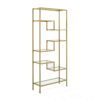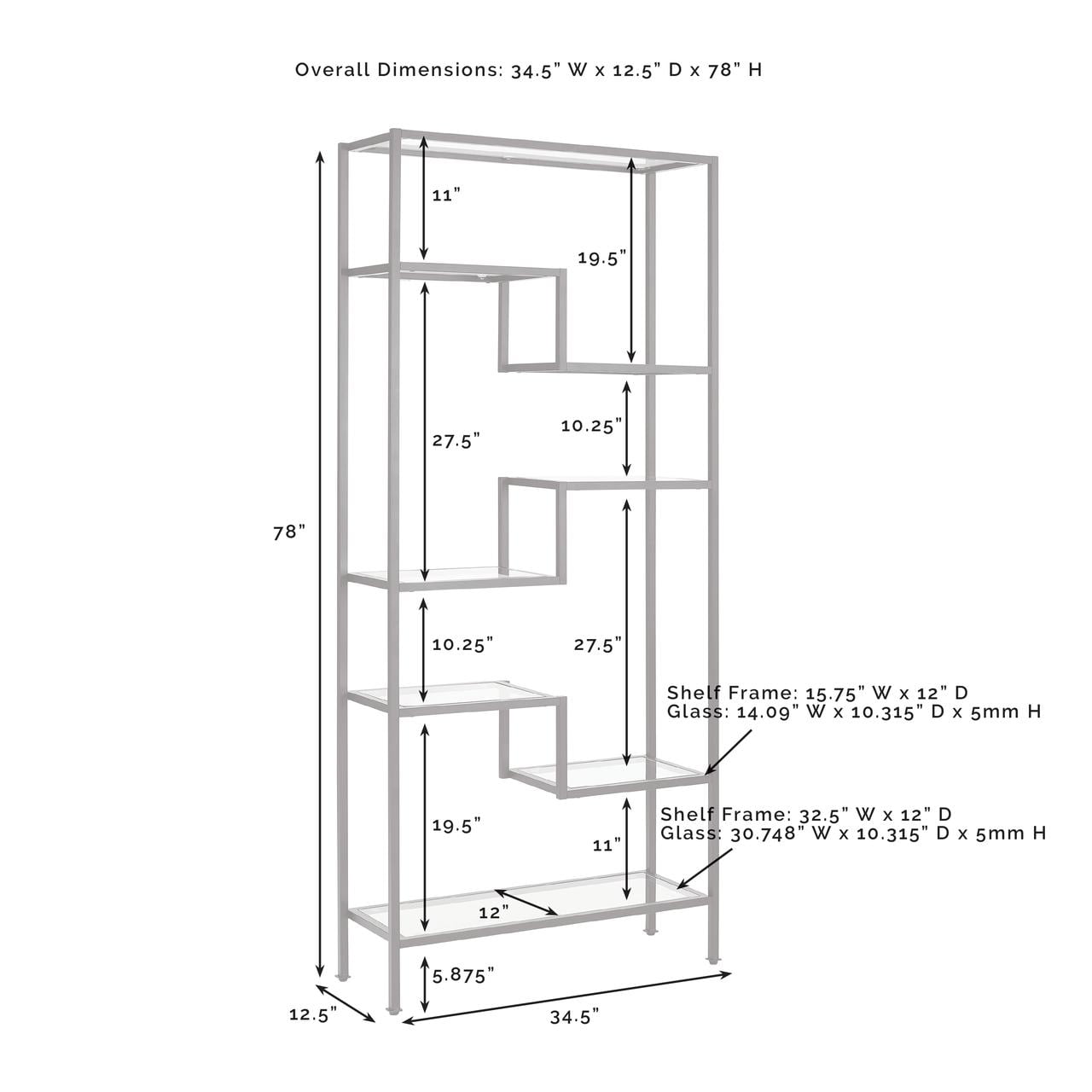Modern beauty and functional simplicity are the hallmarks of the Sloane Etagere Bookcase. Ready to display precious keepsakes or your favorite books, this bookshelf’s sculptural steel frame features sturdy tempered glass shelves. Variable shelf heights create a geometric design with Art Deco flair, making this modern bookshelf an ideal display space.