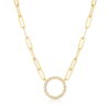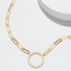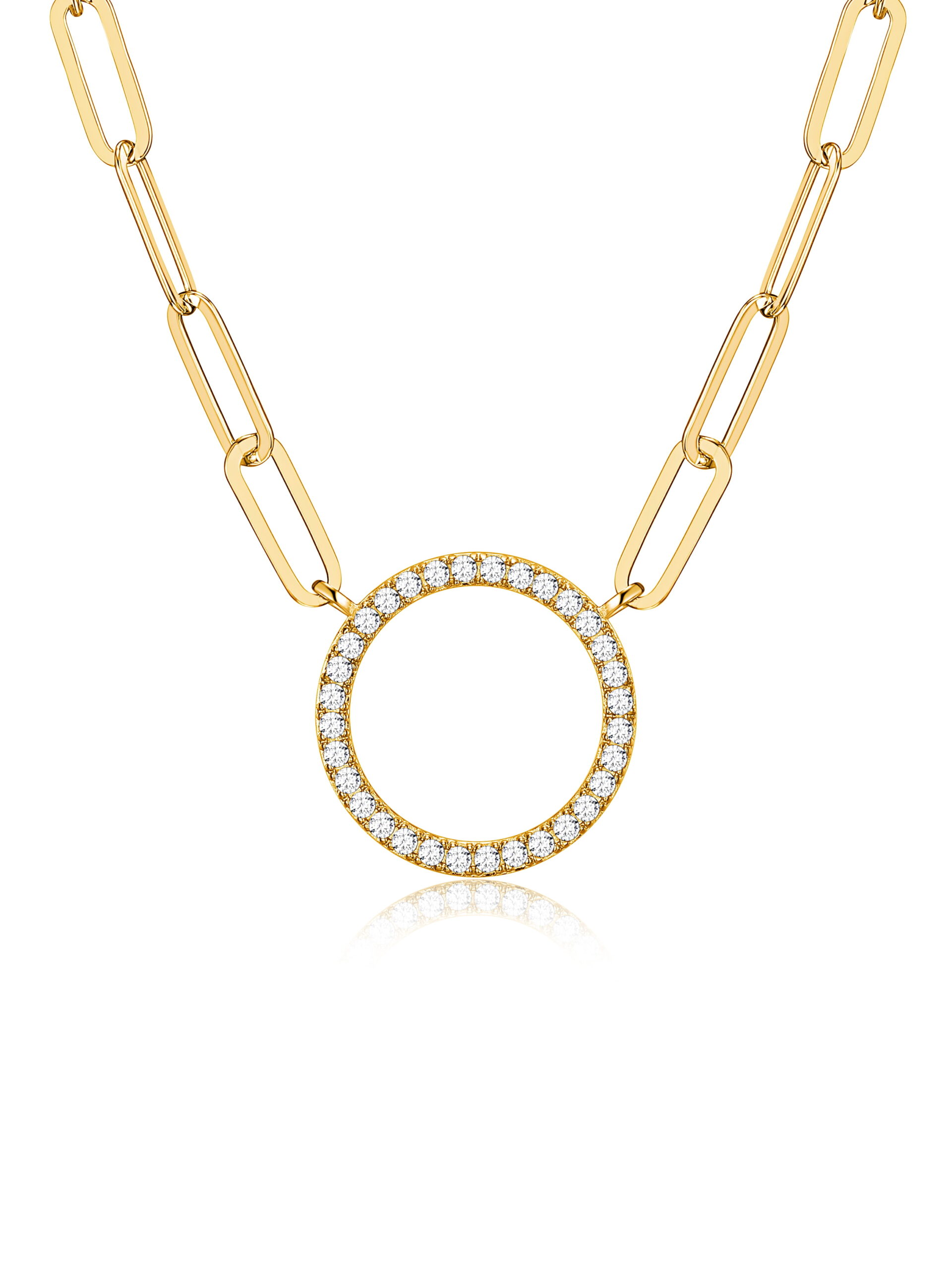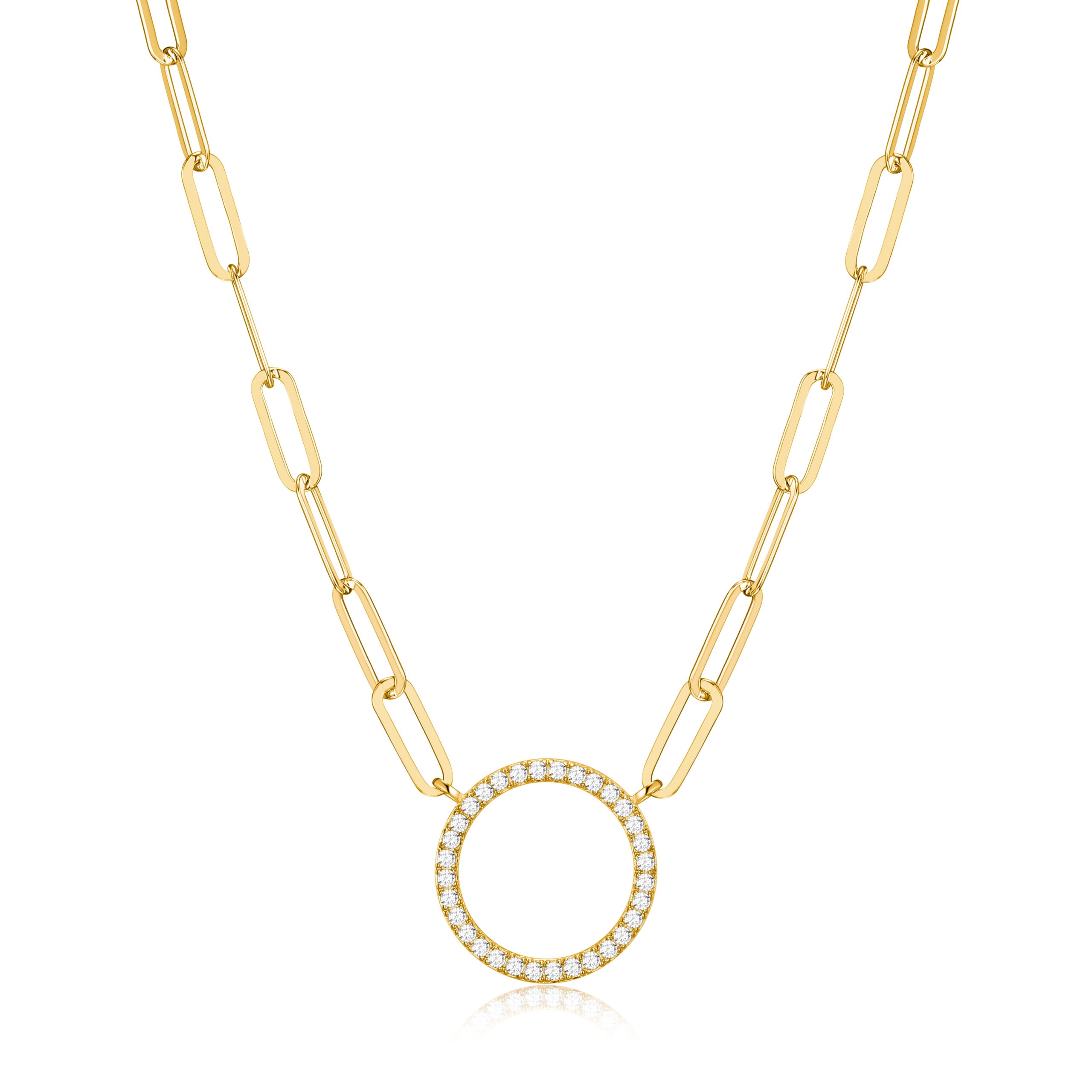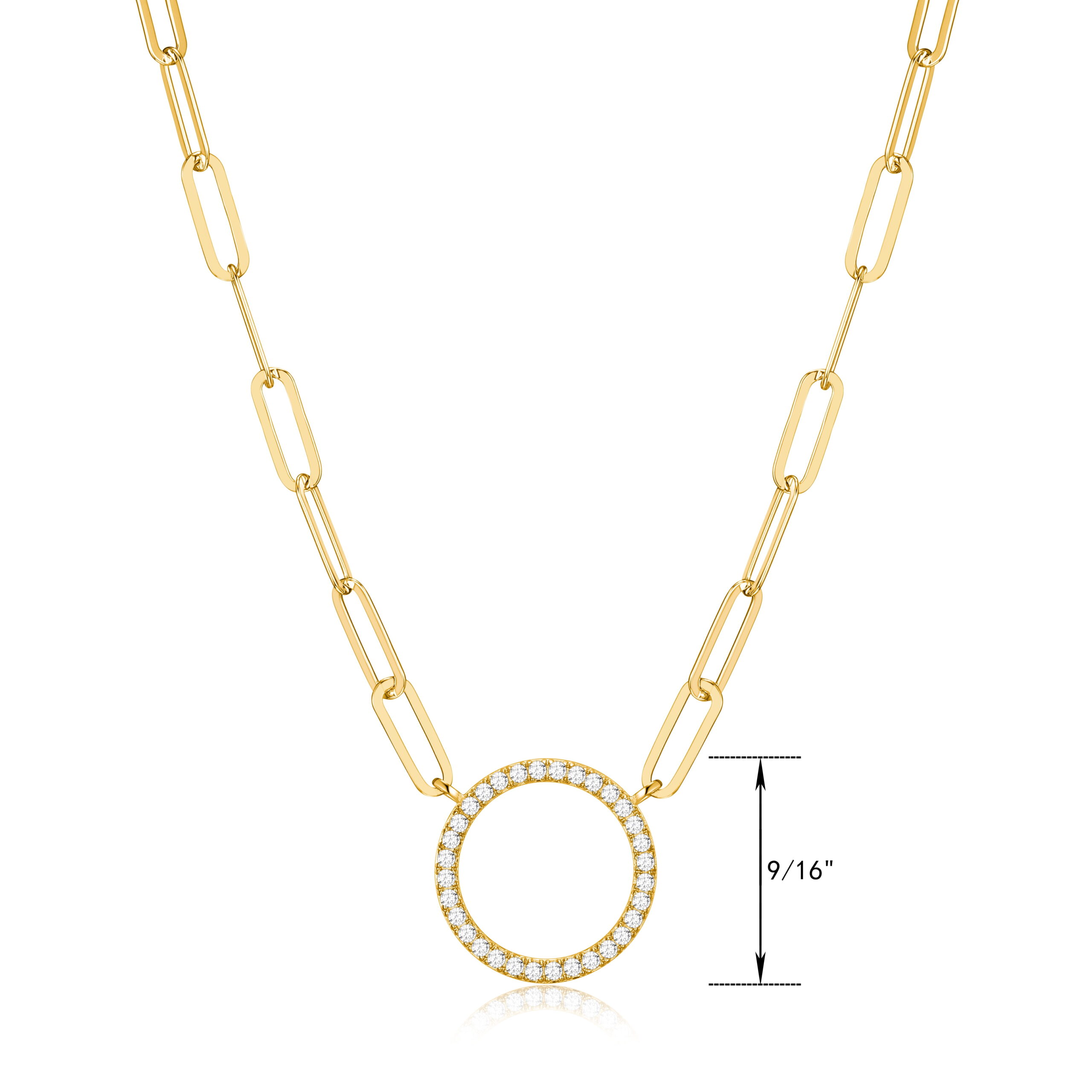 This Forever Facet paperclip necklace features a beautiful cubic zirconia covered circle. Theses cubic zirconia stones are hand set in long lasting 18K gold over sterling silver. This necklace is ready to wear with an 18 inch paperclip chain and 2 inch extender. Shipped in jewelry box with a black velvet pouch, ready to be given as a gift to that special someone. Truly the prefect present for birthdays, holidays, Mother’s Day, Valentine’s Day, for bridesmaids or for any special occasions.