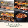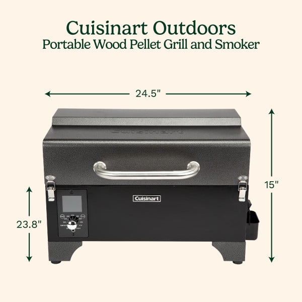 Get smokin’ with the Cuisinart portable wood pellet grill and smoker! This small but mighty grill has 256 sq.in. of cooking space and an integrated sear zone, allowing for direct or indirect grilling. It offers 8-in-1 versatility cooking: smoke, BBQ, grill, roast, sear, braise, bake, and char-grill. With a wide temperature range from 180F to 500F, the digital control automatically adds pellets as needed to regulate the temperature. The 4 lb. hopper capacity allows this pellet grill to smoke for hours without refilling. Enjoy the set it and forget it style cooking with one meat probe included to help you keep an eye on the food temperature. This portable unit is great for backyard dinners, camping, tailgating, and more!