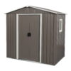 6ft x 5ft Outdoor Metal Storage Shed with Lockable Door for Backyard DEALTOPS manufactures products that meet the industry’s stringent requirements, our outdoor storage series offers spacious, convenient storage of your landscaping equipment, gardening supplies, tools & accessories, and more while keeping them secure and protected. The upgraded thickened panel guarantees durability and longer service life. This MSP-GND8-001 shed utilizes sui generis aluminum frames which greatly increase the overall sturdiness. On top of that, the galvanized steel panels, coated with eco-friendly painting, can endure harsh weather for at least 6 years. Sturdy and reinforced interior structure to make the shed withstand as long-lasting.