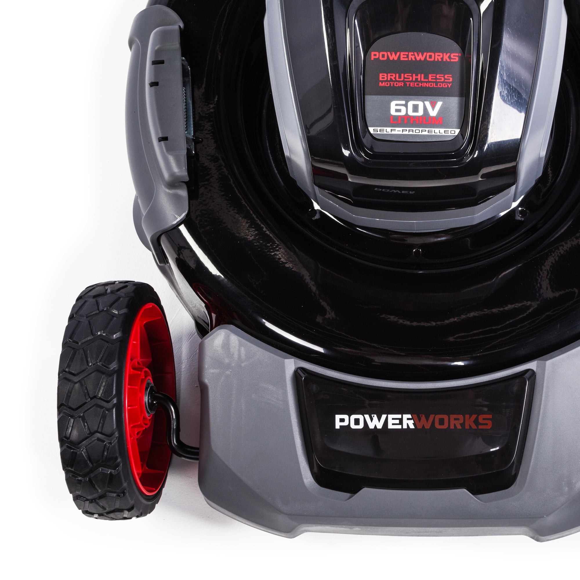 60V 21” Brushless Self-Propelled Mower POWERWORKS – Performance through Power – POWERWORKS 60 Volt tools are designed to get the job done! Our 60V Self-propelled mower is the most revolutionary battery-operated system delivering powerful performance and durability. Our self-propelled mower makes the job easier. Our 60 Volts gives you the power you need and the 5Ah Lithoum-Ion battery provides a run-time of up to 45 minutes to easily power through your yard work. Designed for yards up to 3/4 Acre. (Battery Not Included) Our 60V POWERWORKS Battery is compatible with all our POWERWORKS 60V tools, simply take the battery out of one tool and place it in another then push the start button and you’re ready for your next job. Use one battery, charge one battery and you will have all the continual run-time you need. No gas and no maintenance required. POWERWORKS 60V Self-propelled mower features include 21” Steel Deck with Brushless Motor. Easy push-button start eliminates the pull cord. Not enough room in your garage, POWERWORKS mowers are designed for vertical storage. Mower handles easily fold-in, providing an upright position which takes up 70% less space. The 3-in-1 design provides the ability to mulch, bag or side discharge your grass clippings. Single handle height adjustment. Our POWERWORKS brushless motor provides your POWERWORKS tool with longer run-time, more torque and more power. This leads to less wear and tear, extending the life-time of the tool. POWERWORKS tools come with a 4-year warranty on the tool. Compatible with Snapper 60V batteries.