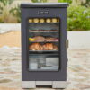 Featuring a 725 sq. inch cooking area and 800W power heating tube, East Oak electric smoker delivers tender, juicy meats with unbeatable flavor. The side wood chip loader allows for up to 3 hours of continuous smoking without opening the door, keeping heat locked in. With a glass door for easy observation, a meat probe for perfect results, and a sturdy stand for comfort, it’s the ideal smoker for effortless and delicious outdoor cooking.