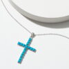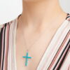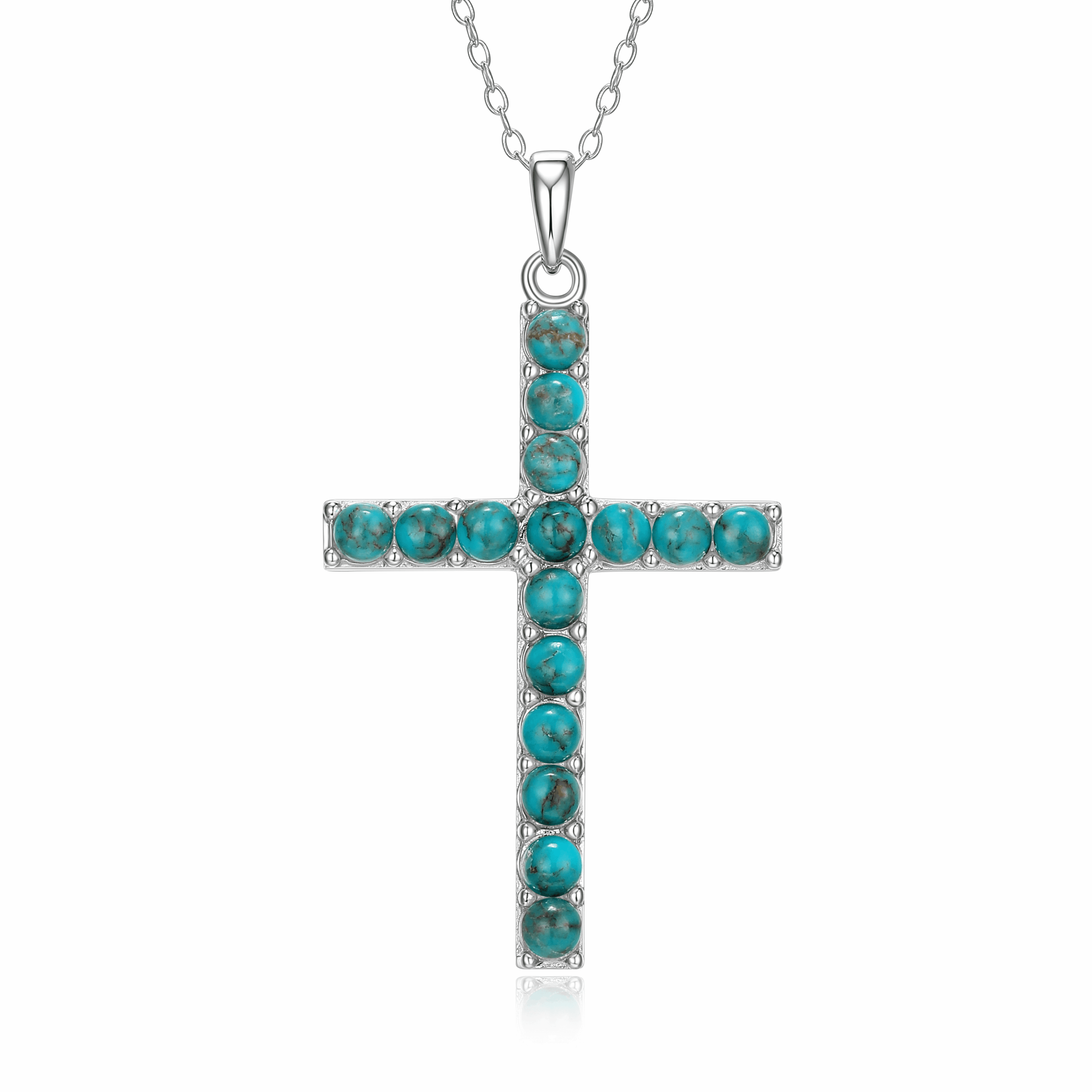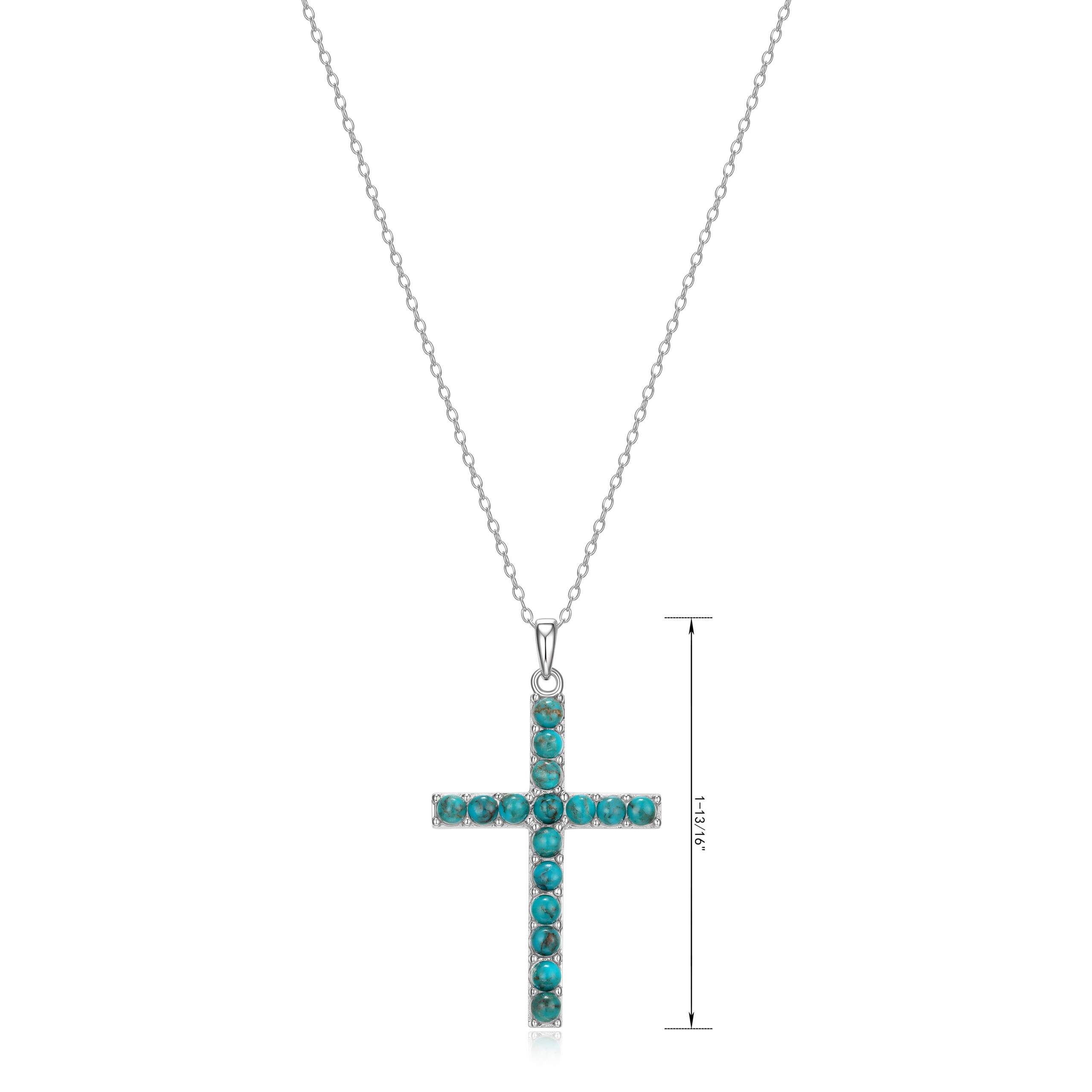 This Forever Facets necklace will add a fashionable tone to any day or evening ensemble. Featuring a genuine turquoise cross hand set in long lasting platinum over sterling silver. Shipped in jewelry box with a black velvet pouch, ready to be given as a gift to that special someone. This beautiful necklace is the perfect way to celebrate a special person in your life or celebrate yourself!