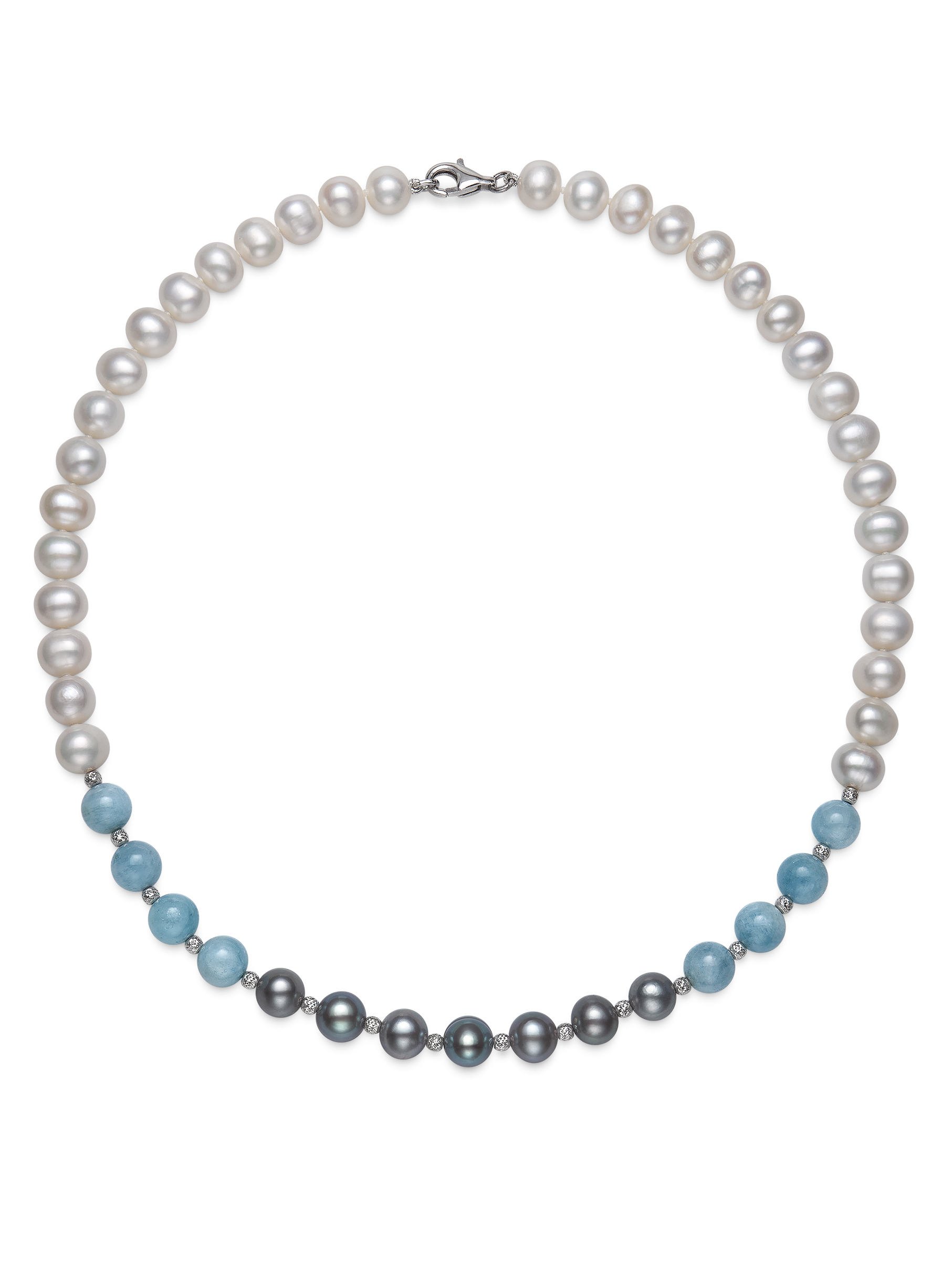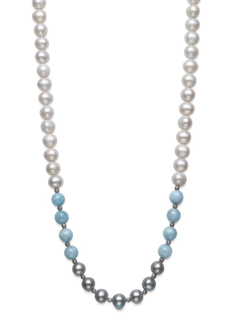 Skip to contentFreshwater Pearl, Milky Aqua and Silver Bead Necklace