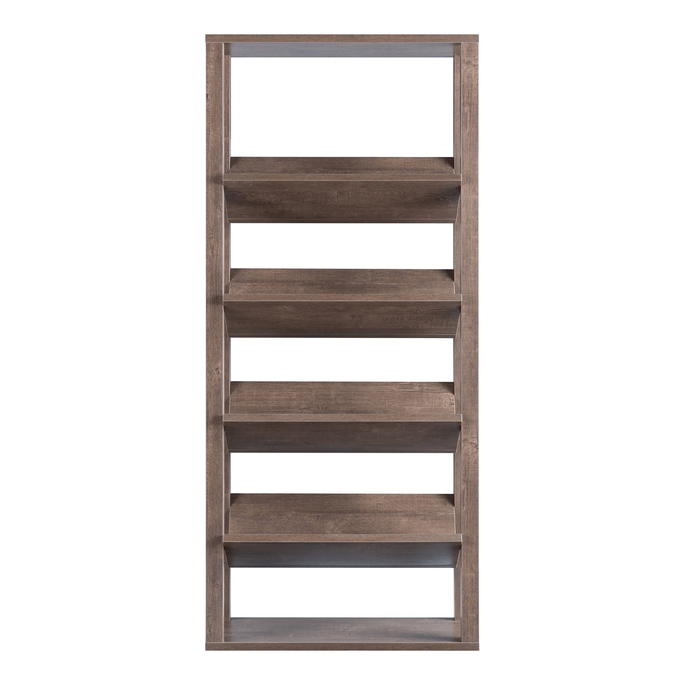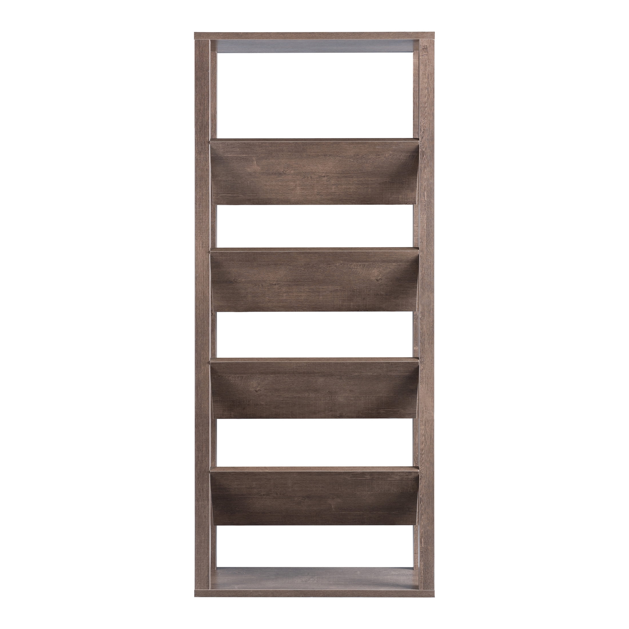 Showcase your best novels on this bookshelf by Furniture of America. The four slanted shelving provide a unique visual of your favorite books. The open side brings visibility through its open sides that allow you to see the covers of books in the end.