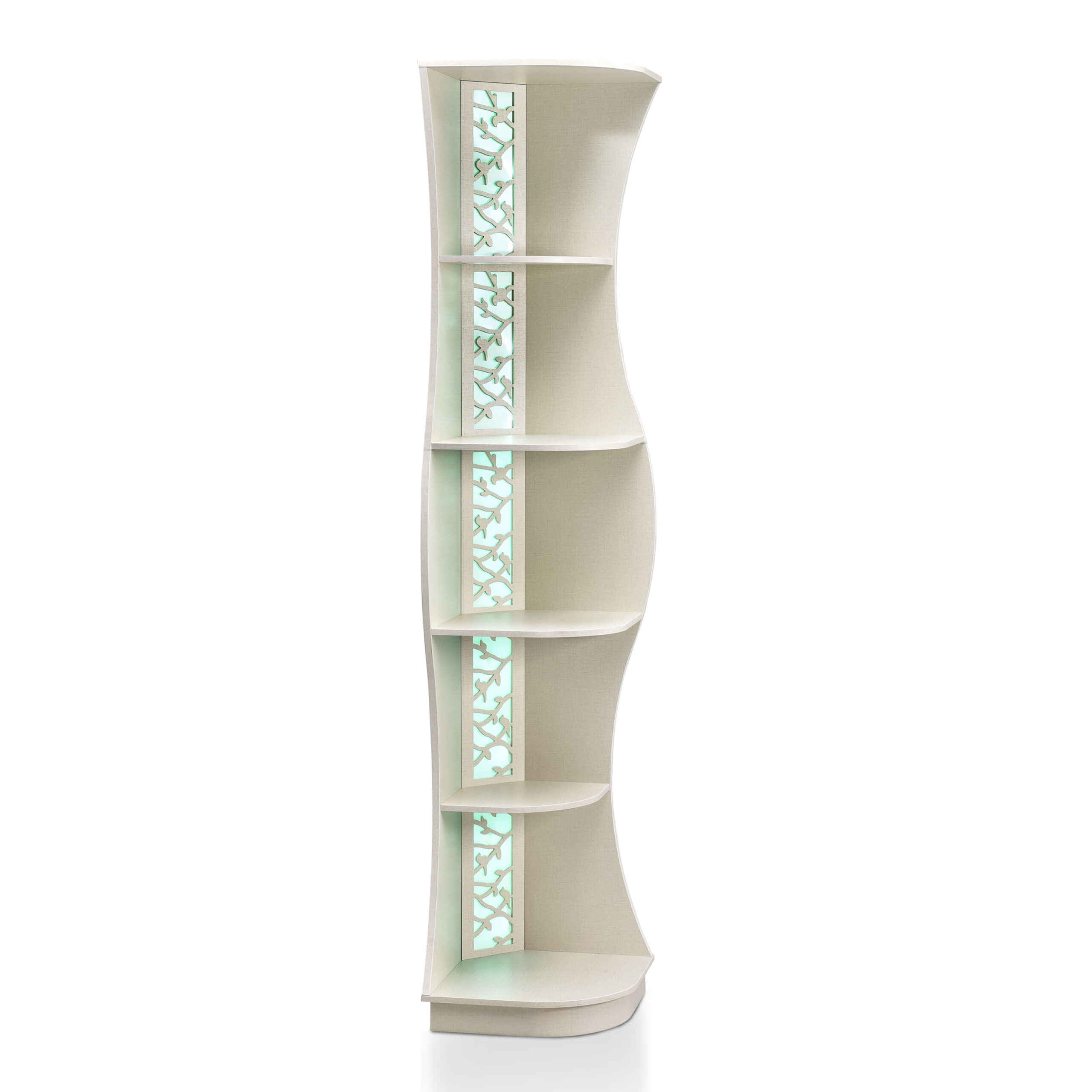 Transform your space with this modern corner bookcase, designed to combine functionality with aesthetic charm. The unique curved shelves bring a contemporary flair, making it an ideal piece for organizing and showcasing books, decor, or collectibles. Choose from the LED-light feature model for a touch of modernity or the non-LED option to suit your organizational needs.