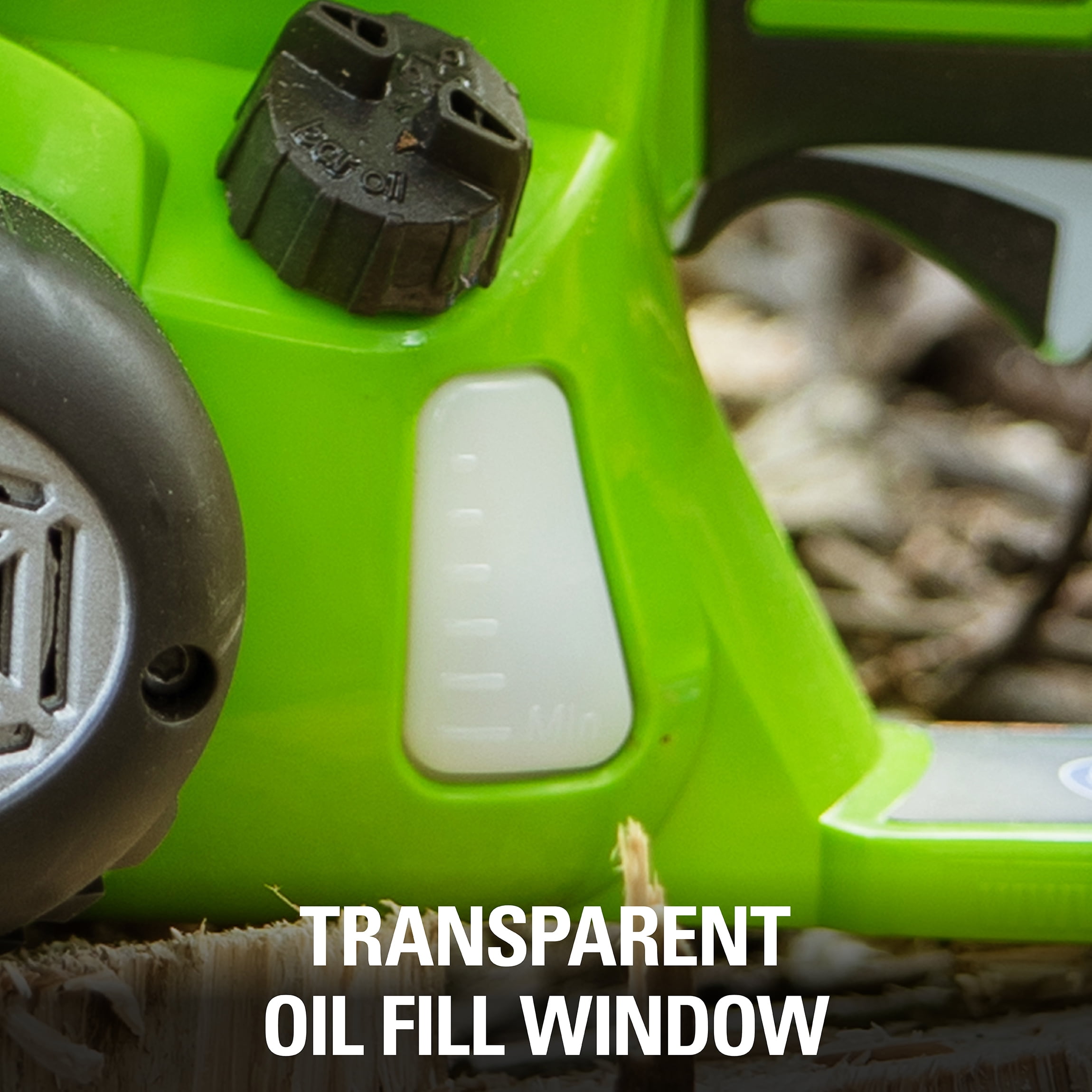 Greenworks 40V 12″ Chainsaw, 2.0Ah Battery and Charger Included. Cordless outdoor power tools are ideal for homeowners like you who are simplifying and focusing on what’s essential to getting the most out of life. The Greenworks 40V family of tools are built with medium weight construction and high-efficiency motors. The Greenworks 40V lithium-ion battery platform powers over 40 outdoor products, including lawn mowers, blowers, string trimmers, chainsaws, hedge trimmers, and much more! The 40V lithium-ion battery provides the power you need, and delivers fade-free power with no memory loss after charging. The Greenworks 40V platform comes with a 3 year tool / battery warranty to protect your investment. Of high-quality manufacturing, these products are easy to start and lighter weight than the gas products you’re used to, making your day of yard work a whole lot easier. Perfect for yards up to ⅓ acre, Greenworks 40V tools are lightweight, start instantly, and require virtually no maintenance – no gas, no oil, no mess – but still deliver gas-like power.