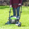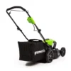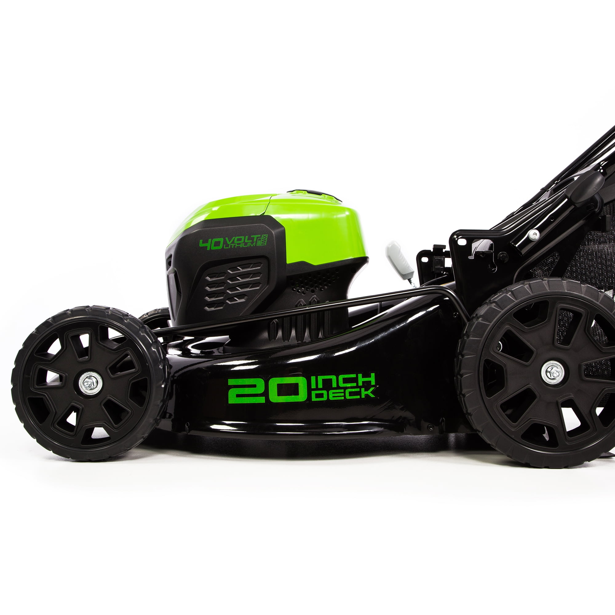 The Greenworks 40V 20” Brushless Push Lawn Mower, which comes with a 4.0 Ah Battery and Quick Charger, makes lawn care easy and efficient. Its powerful brushless motor runs quietly and lasts longer. The strong steel 20” cutting deck and SmartCut™ technology ensure great cutting performance. This mower offers 13 options, including rear bagging, mulching, and side discharge for managing grass clippings. The simple push-button start makes it easy to use. When one battery runs out, it automatically switches to the second battery, so you can keep mowing without stopping. Compatible with the Greenworks 40V Li-Ion system, this mower works with other tools for more efficient yard work. Enjoy easier lawn care with the Greenworks 40V Brushless Push Lawn Mower.