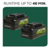 The new Greenworks 48V (2x24V) 20″ Brushless Battery-Powered Lawn Mower is engineered for homeowners managing up to 1/3 acre of lawn, delivering a runtime of up to 45 minutes with the included two 4.0Ah batteries. The mower features a 4-in-1 system that allows you to mulch, bag, side discharge, or turbo leaf pickup, providing versatility for any mowing task. With high-intensity LED headlights, you can enjoy optimal visibility and safety during your mowing sessions, even in low-light conditions. Designed with convenience in mind, the folding handles make storage simple and efficient, taking up to 70% less space when not in use. This mower is backed by a 3-year limited warranty on both the tool and battery, ensuring peace of mind with your purchase. Additionally, you can power over 125 tools with any Greenworks 24V battery, making this mower a versatile addition to your outdoor equipment collection. Included in the package are two 24V 4.0Ah batteries and a dual port battery charger for quick recharges in just 75 minutes per battery. Experience the future of lawn care with this powerful and efficient mower!