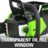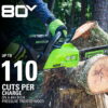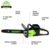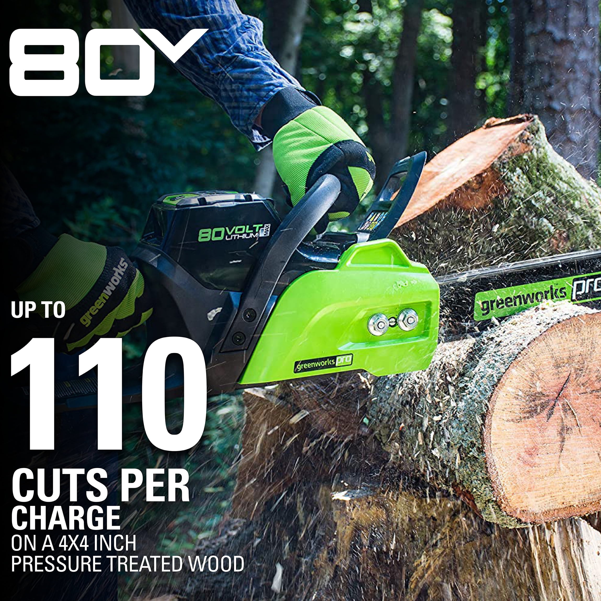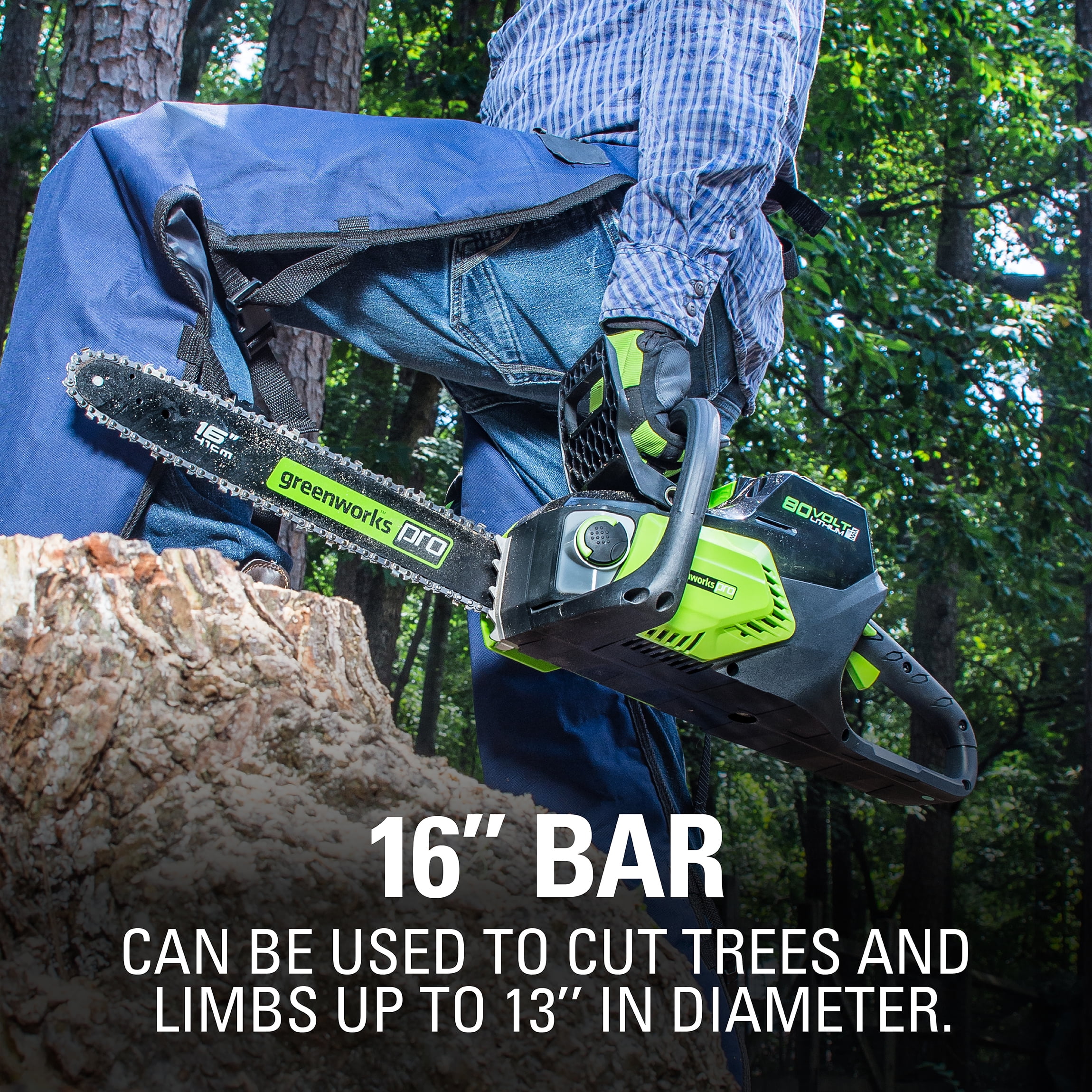 The Greenworks 80V 16” Brushless Chainsaw with 2.0 Ah Battery & Charger represents a revolutionary shift towards a lightweight, hassle-free chainsaw experience. Eliminating the need for gas and the associated maintenance, this chainsaw embodies innovation and ease of use. Featuring a digitally controlled brushless motor, it ensures enhanced torque, quieter operation, and prolonged lifespan. As part of the Greenworks 80V lineup comprising over 75 high-performance tools, this chainsaw offers an eco-friendly alternative to gas-powered tools. With steel bucking spikes and a durable metal wrap-around handle, it guarantees sturdiness during operation. The onboard chain tensioning tool simplifies adjustments, while the electronic chain brake ensures safe usage. Additionally, the automatic oiler maintains the bar and chain, ensuring durability and an extended life span, aided by the translucent oil tank for easy monitoring of oil levels. Backed by a 4-year limited tool and battery warranty, the Greenworks 80V Chainsaw is a reliable, efficient, and eco-conscious cutting solution for various tasks.