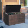 Our storage box will a perfect addition to your patio, garden, poolside or other outdoor places. With about 88-gallon inner space and 2-layer design, this box can store your various daily items, such as cushions, garden tools and so on. There are two ways to open the box: open from the top cover or open from the front door, allowing you to use it easily. Moreover, premium steel and tight rattan ensure the overall sturdiness and durability. It can not only work as a storage box, but also provide a seat for you to take a rest. And it will be easy for you to clean and assemble it. Don’t hesitate to take our storage box home!