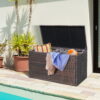 Gymax 88 Outdoor Gallon Rattan Storage Box Patio Container Seat w/ Door Brown