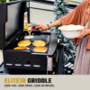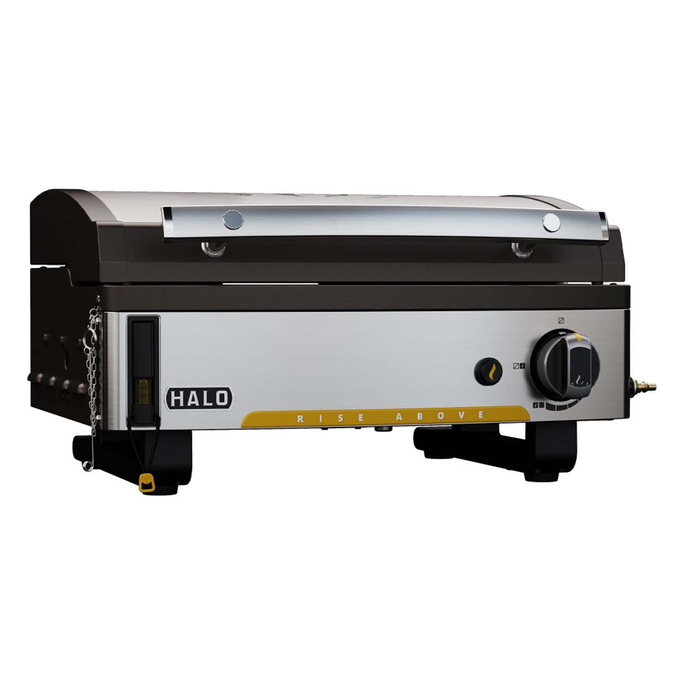 The HALO Elite1B Countertop Griddle is a compact propane griddle made for patios, tailgates, and small spaces. It features a high-output single burner with 2-zone control and heats to 600°F in under 10 minutes. The 21-inch inset griddle plate delivers even, wind-resistant heat. The rear grease tray makes cleanup easy, and the built-in bubble level ensures a steady cook surface. Made with durable stainless steel and designed for portability, the Elite1B gives you big performance in a compact package.