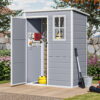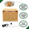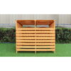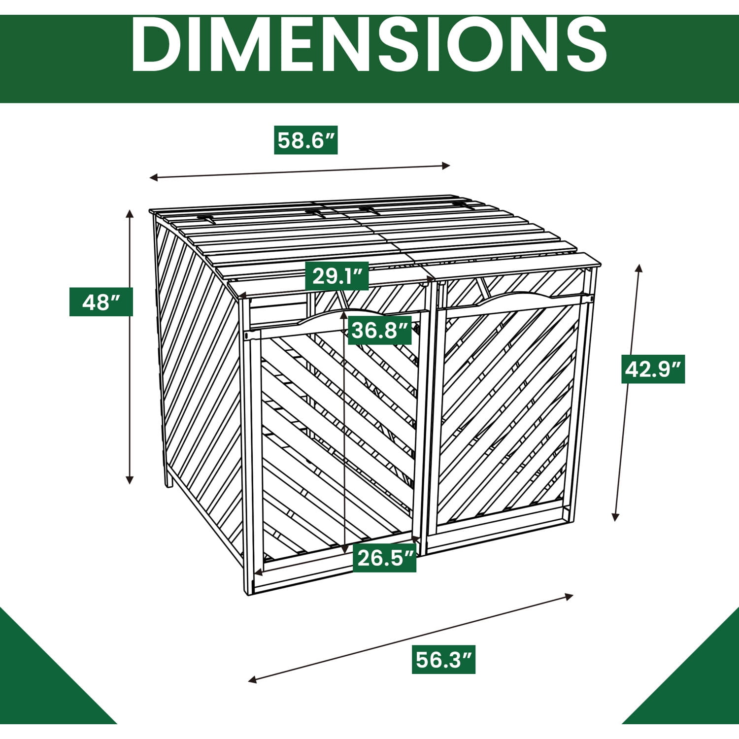 Keep your trash and recycling bins tidy and pest-free with a Wooden Trash and Recyclables Bin Storage Shed from Hanover. Unsightly trash bins will no longer blight your backyard or stink up your storage shed, instead keep them out of sight and out of mind in one of these simple, yet stylish storage sheds, designed to fit up to two 60 gallon garbage cans or recycling bins. Flip up one or both of the dual hinged lids when taking out the trash or use the front two doors to move your trash cans in and out of the shed with ease. To keep pests out, the shed comes with a metal, locking latch that accommodates most combination or keyed locks (padlock NOT included). Stable and durable, the wooden shed is constructed with natural fir wood to last through many seasons. For all of your outdoor storage needs, depend on quality products from Hanover.