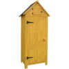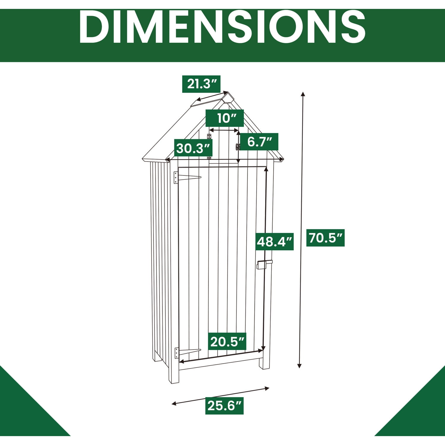 Say goodbye to outdoor clutter and keep everything organized in one place with this modern utility shed by Hanover. It’s the perfect place to store tools, garden supplies and all of your outdoor accessories – with 8.7 cubic feet of internal space, you can protect it all. Equipped with three short shelves and a storage loft, you can neatly store your smaller items and still have room for larger, vertical tools like rakes and shovels. To keep your possessions safe, the shed comes with a metal, locking latch that accommodates most combination or keyed locks (padlock NOT included). The asphalt roof is waterproof and the pitched roof design allows efficient water and snow runoff to keep everything nice and dry all year long. Stable and durable, the wooden shed is constructed with natural fir wood to last through many seasons. For all of your outdoor storage needs, depend on quality products from Hanover.
