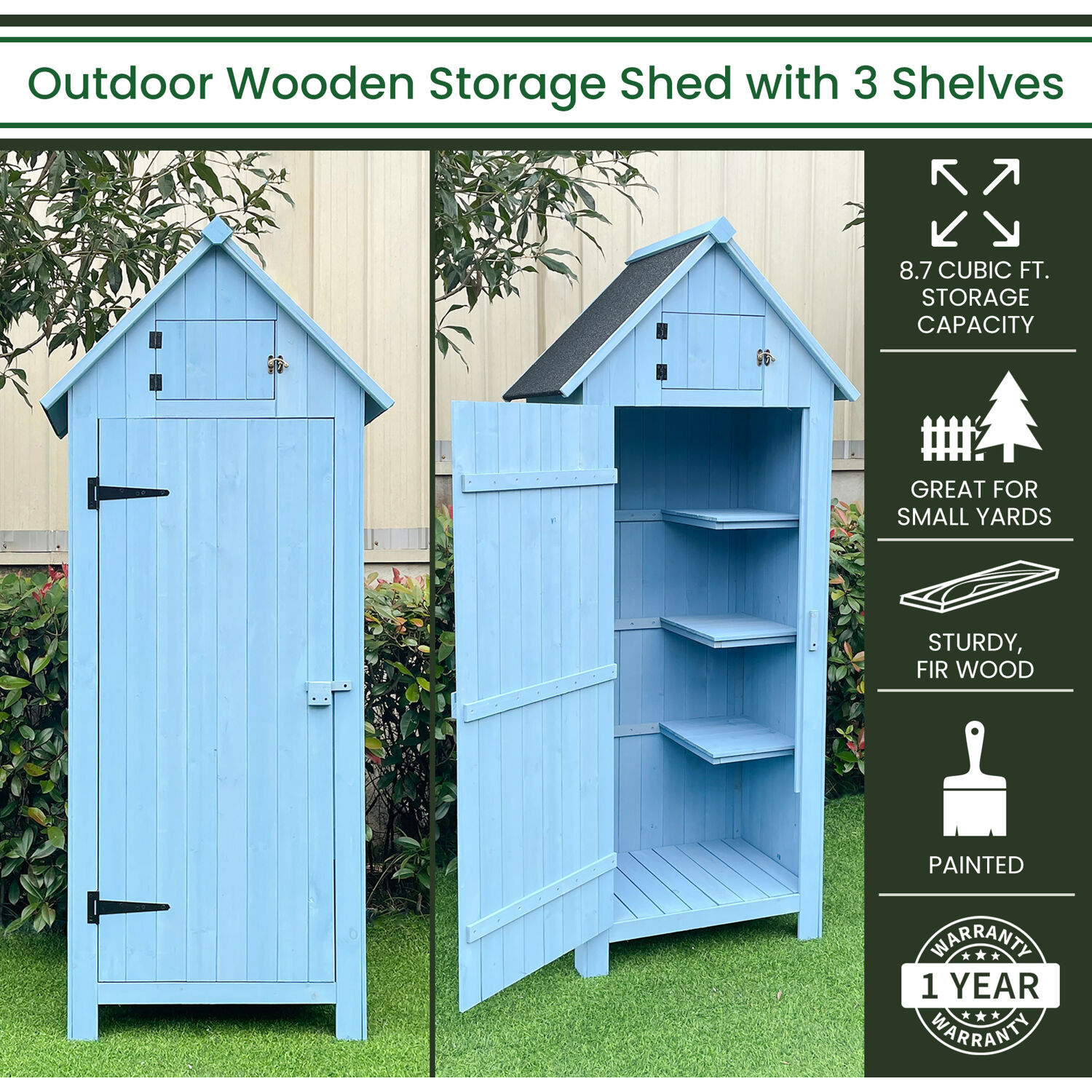 Hanover Sturdy Durable Waterproof Wood Outdoor Vertical Storage Shed, 70.40″x 30.30″x21.30″, Blue