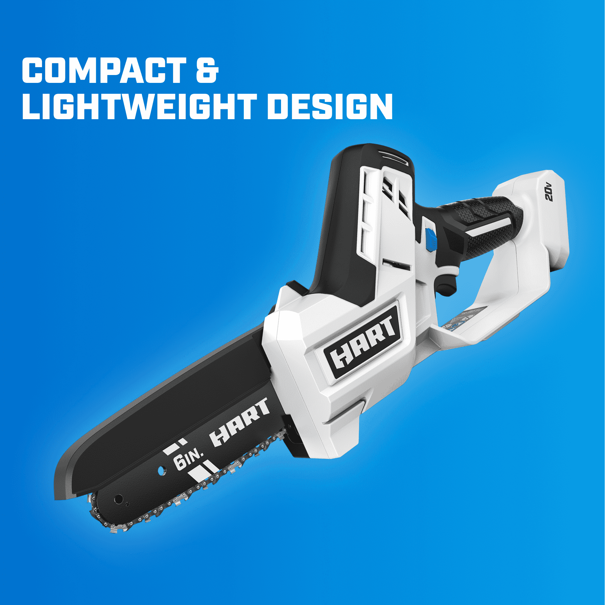 Introducing the HART 6″ Pruning Saw, designed for precise trimming of small limbs and branches. With its compact, lightweight build, it offers easy handling and accuracy. The oil-free operation means no messy maintenance, and the tool-less chain tensioning allows for quick adjustments while pruning. The rear grip provides comfort during long use, while the front chain guard helps reduce kickback for added safety. Compatible with all HART 20V batteries, this saw ensures continuous power and convenience, making pruning tasks easier and more enjoyable.