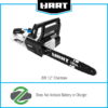 The HART 20V 12-inch Brushed Chainsaw provides the perfect solution for your light trimming and pruning needs. The HART 20V 12 Brushed Chainsaw is ideal for light limbing and trimming small trees and bushes around the yard. The rear comfort grip provides enhanced user comfort and reduced user fatigue during extended periods of use. The push button oiler instantly lubricates your chainsaw blade, ensuring fast and smooth cuts during every use. The HART 20V 12-inch Chainsaw provides a 10″ maximum cutting diameter, which is perfect for cutting through small limbs and trees around the house. The HART 20V Battery (Not Included) is compatible with all HART 20V tools. The HART 20V Brushed Chainsaw is covered by a 3-year limited warranty.