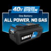 Go cordless with this battery-powered 40V 20” Self-Propelled Mower from HART. This mower cuts up to ½ acre on one charge. Choose how you want to mow with 3-in-1 bagging, mulching and a side-discharge chute. Oh, and that annoying pull cord? It’s gone. This battery-powered machine starts with just the push of a button. Height modifications are also easily made with a single-point height adjustment knob (1-1/2″-4″ cutting range) instead of adjusting each wheel individually. Onboard battery storage carries 2 batteries at once, so when your first battery runs down you’ve got a spare to finish up the job. Another time saver is the included fast charger, which charges 2x faster than a standard 1.5Ah charger. When you’re done, the FAST FOLD handles make for easy upright storage. Works with All HART 40V Batteries. Includes: 20” Self-Propelled Mower, 40V 6.0Ah battery, fast charger, grass catcher bag, start key, mulch plug and operator’s manuals. 65.15 lbs and 20-inch.
