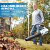 This 40V Brushless 600 CFM Leaf Blower Kit will make fall cleanup feel so new and easy. This tool not only clears stubborn materials such as wet leaves, but also lifts and moves twigs, grass clippings, and more. And it does so quickly and efficiently. The turbo fan design provides 600 CFM and 155 MPH of maximum clearing power, while the variable speed trigger gives you total control. Lightweight, compact design provides the ultimate user comfort during extended periods of use. Plus, there’s no stubborn start-up cord to deal with. Just press the turbo button for maximum clearing power. Battery power also eliminates the fumes and mess that come with gas-powered blowers. Brushless Motor Technology delivers more power, longer runtime, and longer motor life. Plus, it’s cordless, so you’re free to work anywhere without tripping over or getting tangled up in cords. Finally, the *Ultra-Quiet Technology* makes it our quietest blower to date. The included 40V 4.0Ah battery is compatible with all HART 40V tools. Disclaimer: *compared to brushed blower.
