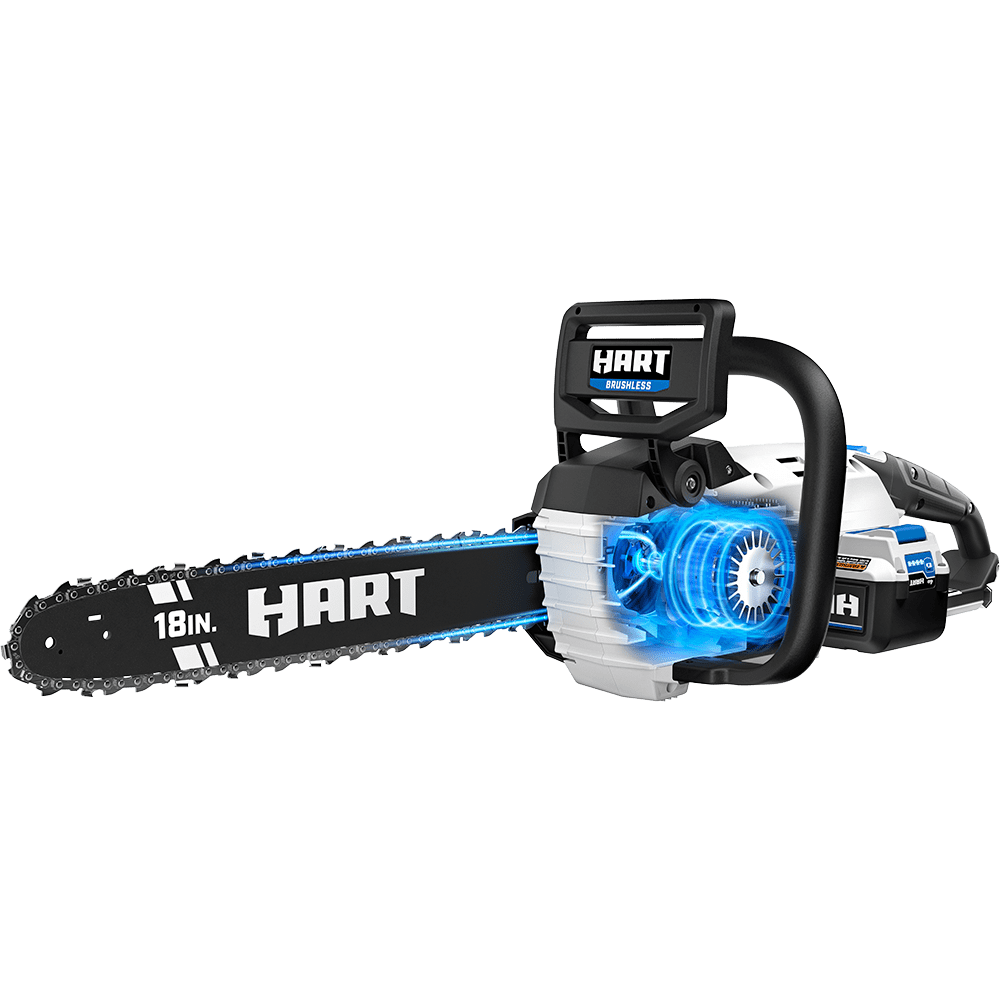 Looking for the best battery-powered chainsaw? Look no further than the HART 40V 18” Supercharge Chainsaw. This premium chainsaw is equipped with a brushless motor that outperforms 38 CC gas chainsaws**. And 4X faster cutting*** makes this cordless electric chainsaw perfect for cutting trees, branches, and logs. Plus, the brushless motor provides more power, longer runtime, and extended life. Other premium features include an 18″ bar for 32″ cut capacity, an adjustable automatic oiler, and a chain brake designed for user safety.