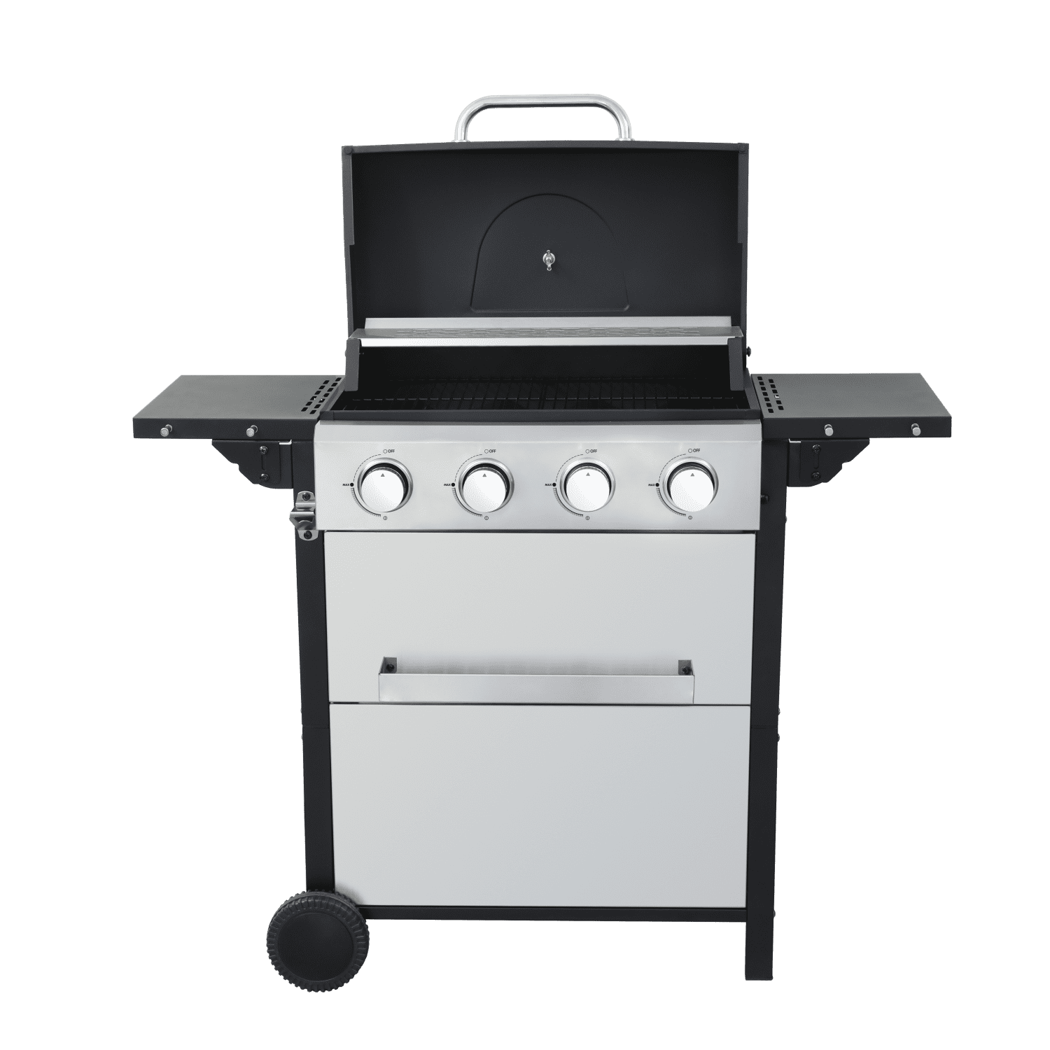 color scheme and is treated with a high-temperature resistant powder coating to ensure long-term durability. The powerful Gas BBQ Grill provides stable and even firepower, and is equipped with a rotary automatic ignition system, making ignition easier