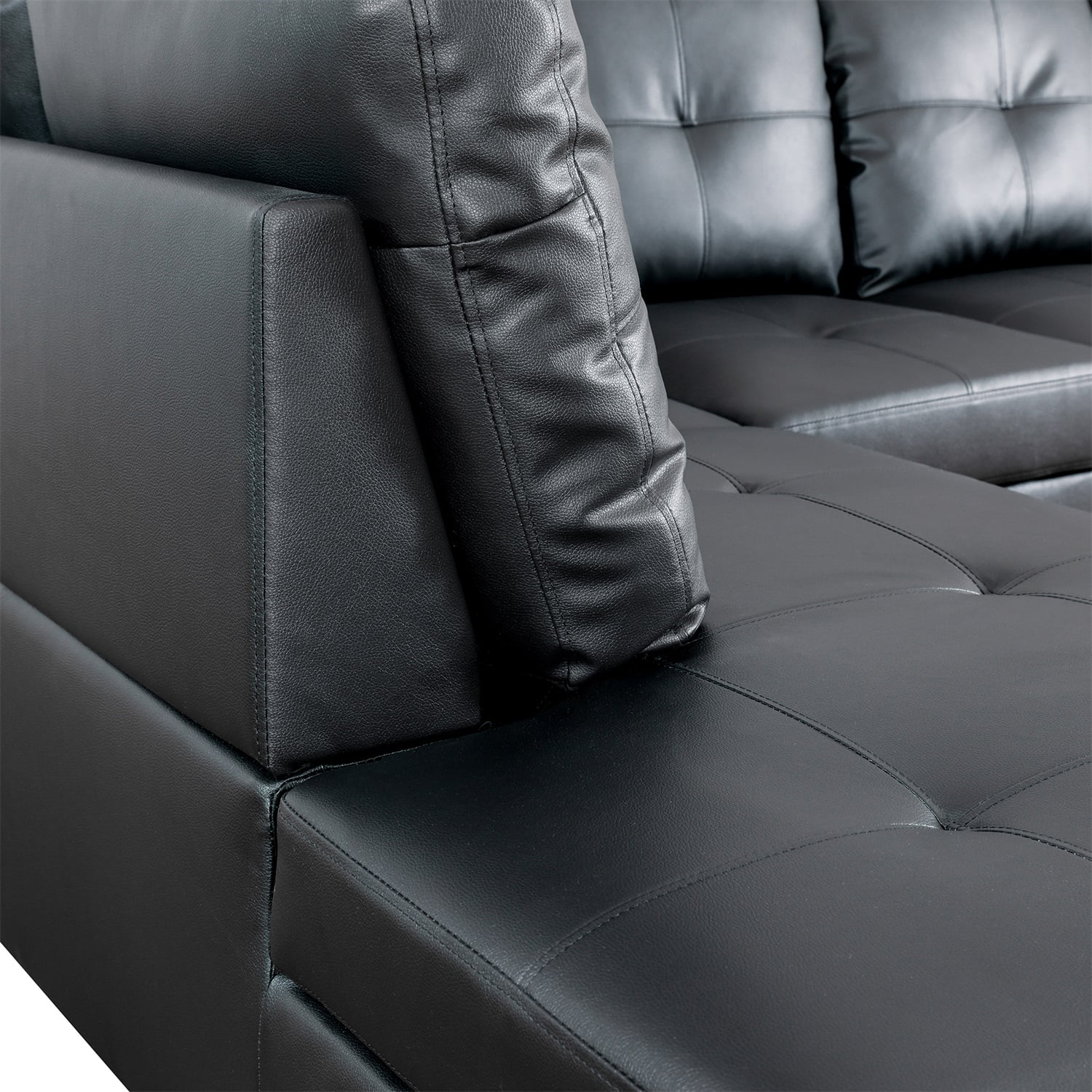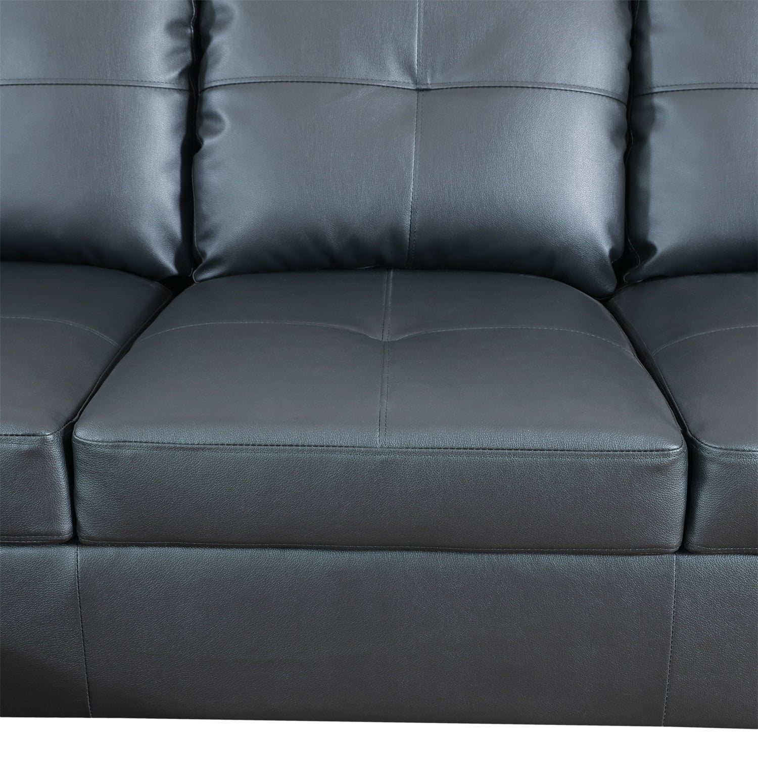 Hommoo 4 Seat Living Room Furniture Sets, Faux Leather Sectional Sofa, Modern L-Shaped Couches and Sofas Set for Home, Black(No Ottomans)