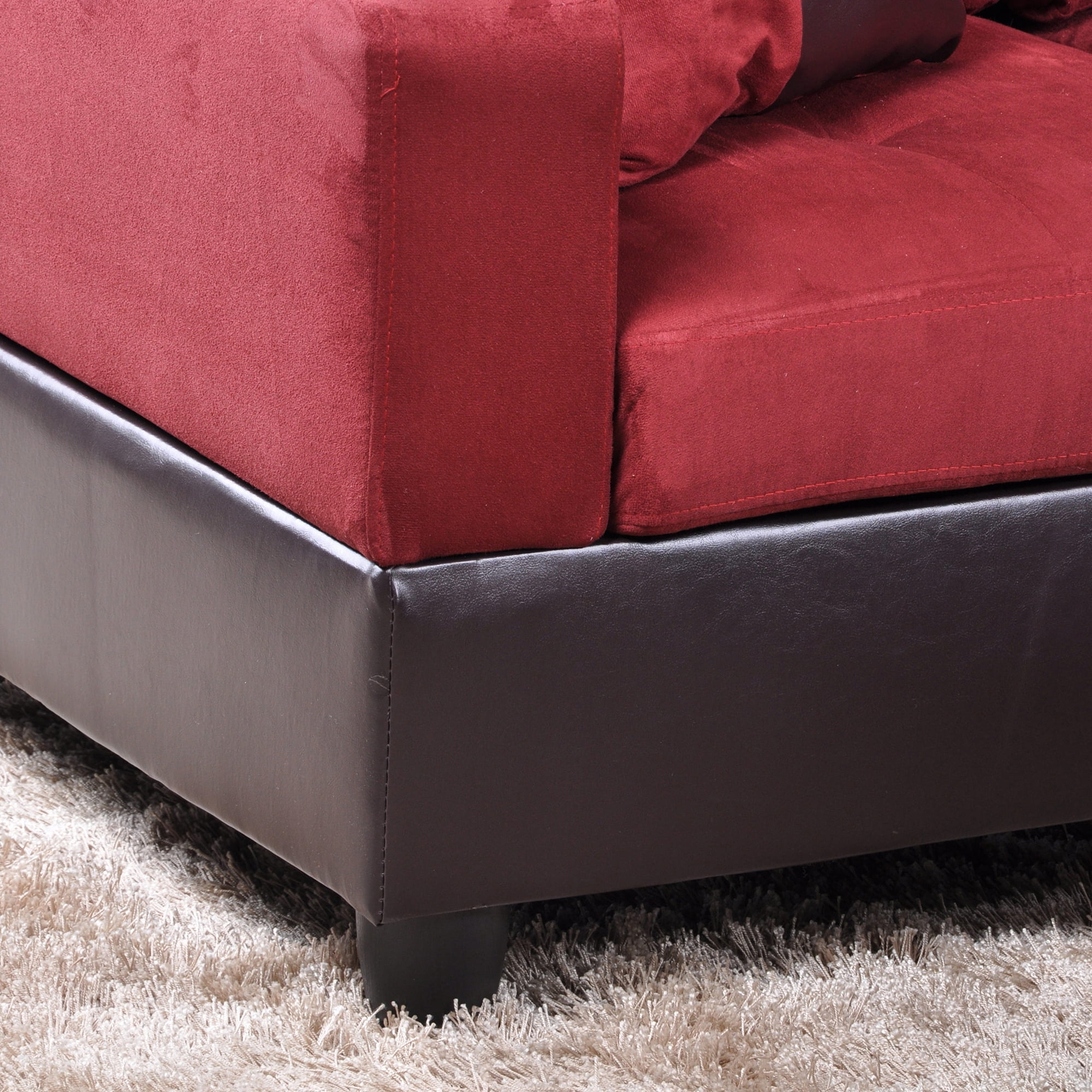 Hommoo 4 Seats Flannel And PVC Sectional Sofa Couch Set, Modern L Shaped Sectional Couch, Living Room Furniture Set, Red