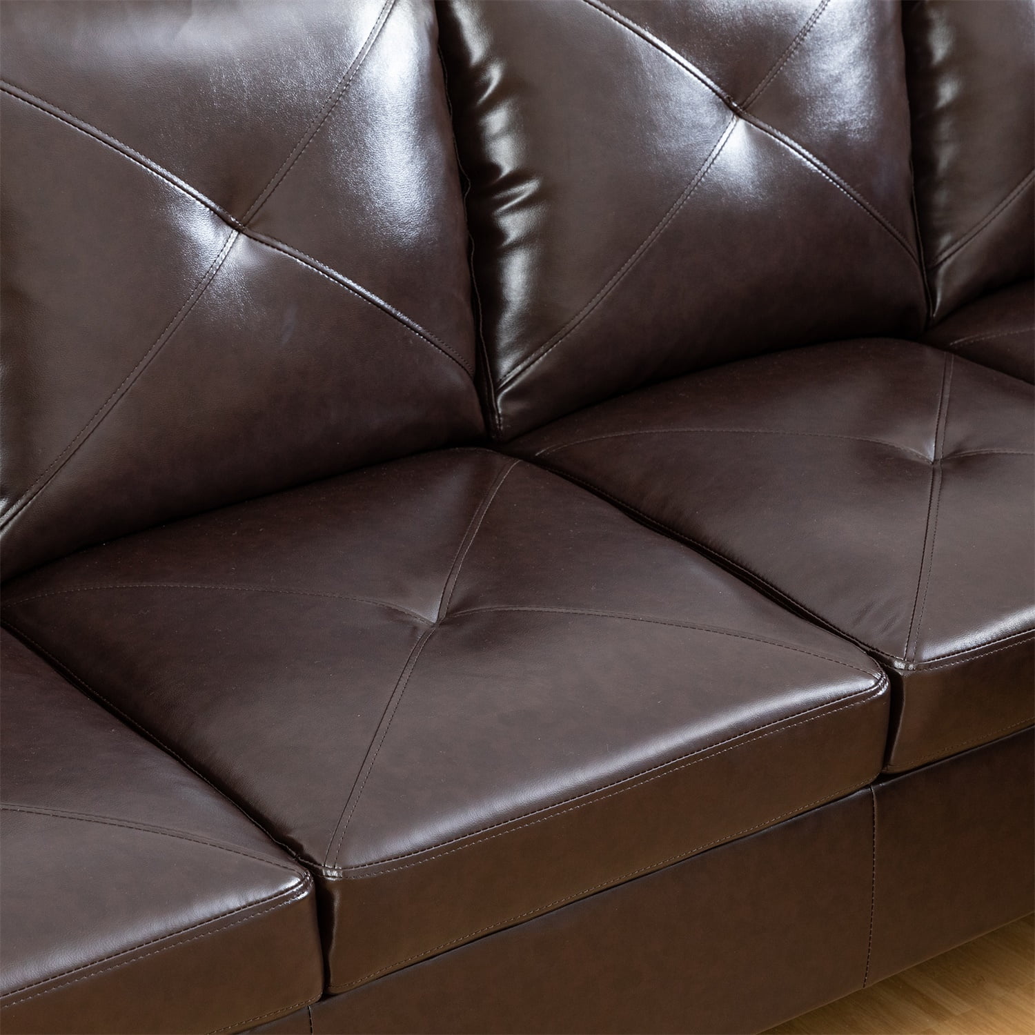 Hommoo Faux Leather Sectional Sofa, 4-Seat L-Shaped Couch, Modern Indoor Living Room Furniture, Apartment, Office, Brown(Without Ottoman)