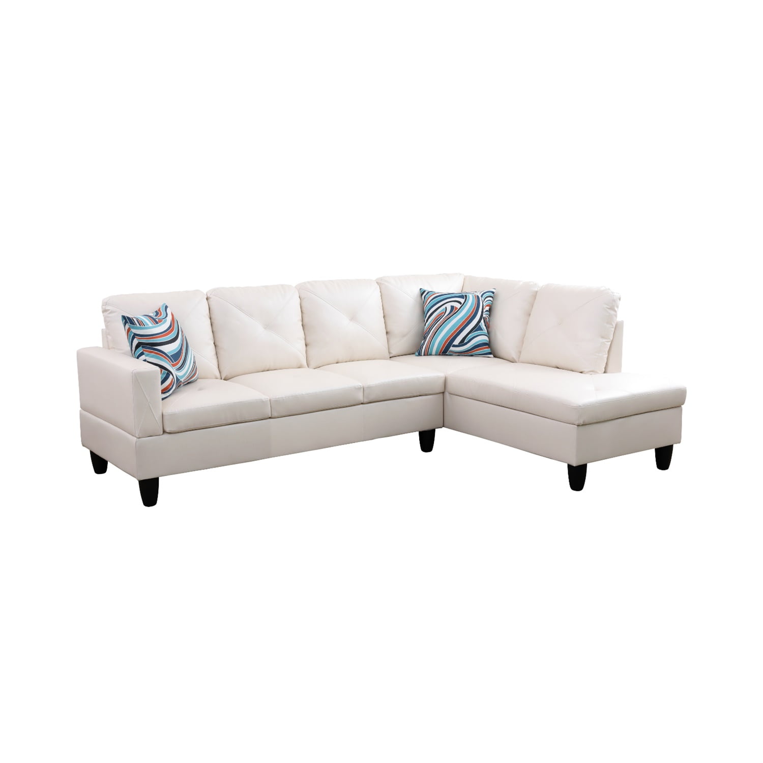 Hommoo Faux Leather Sectional Sofa, 4-Seat  L-Shaped Couch,  Modern Indoor Living Room Furniture, Apartment, Office, White(Without Ottoman)