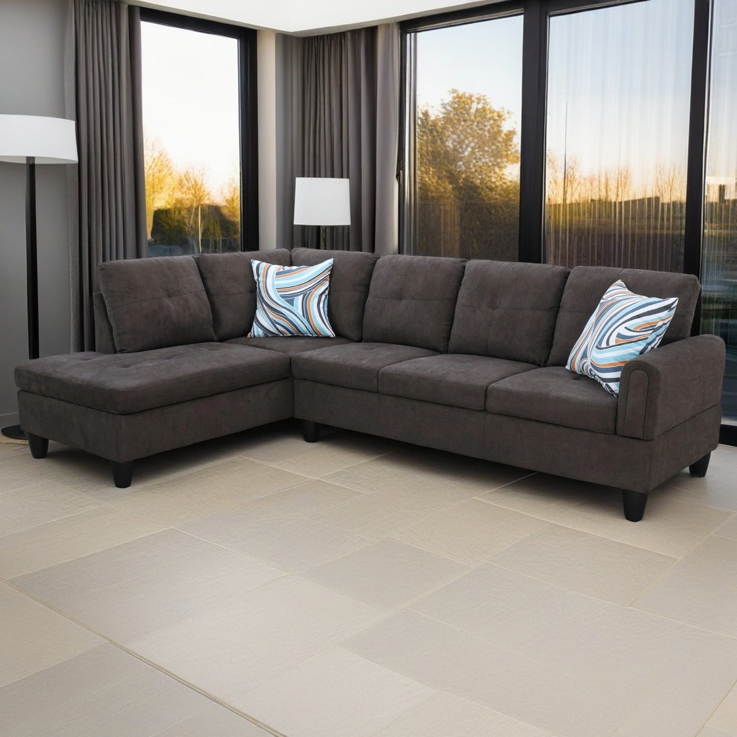 Hommoo Flannel Sectional Sofa Model Set, Modern 4-Seat Couches and Sofaes, L-Shaped Living Room Furniture Set, Dark Brown(No Ottomans)