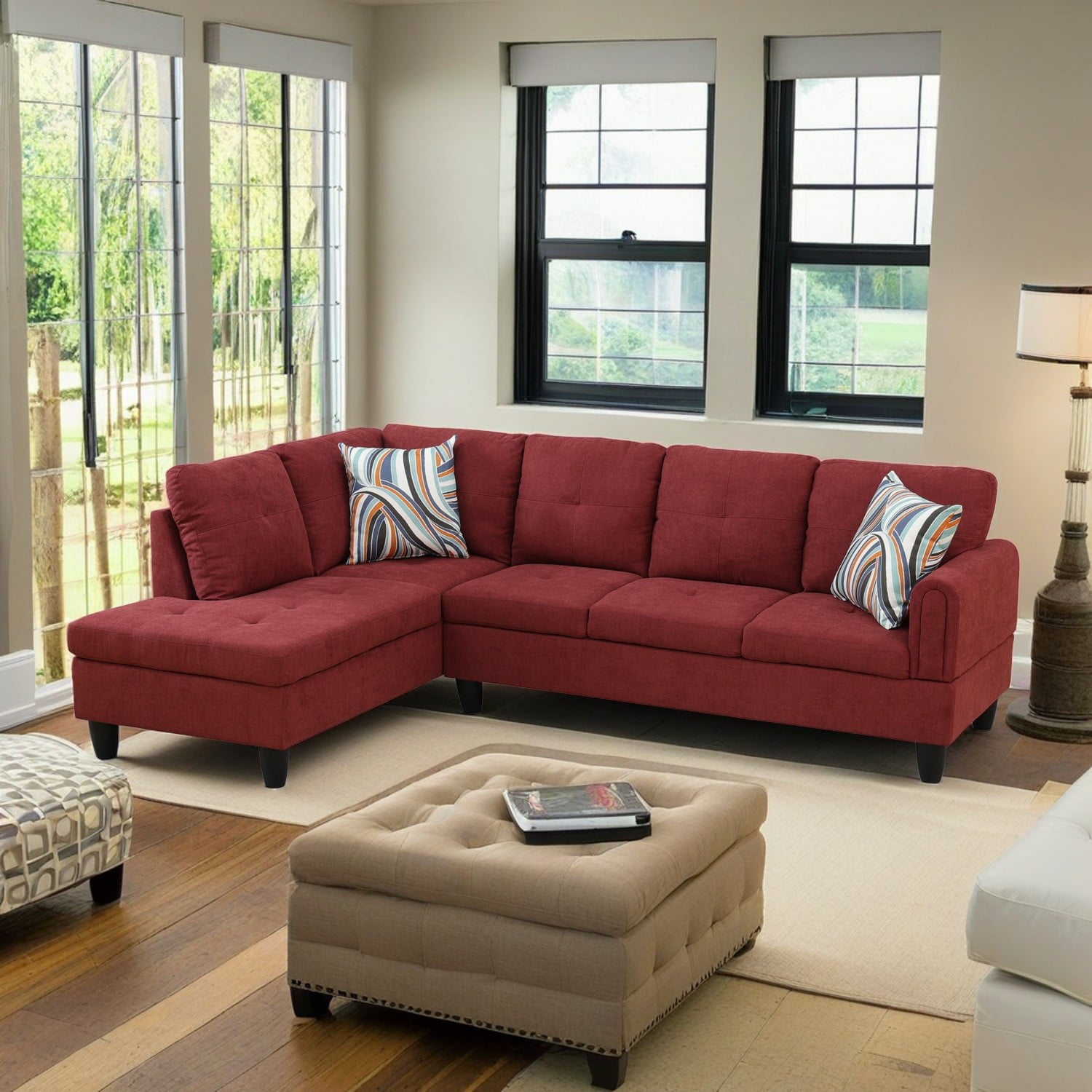 Hommoo L Shaped Couch Set Sectional Sofa Set, Flannel Living Room Furniture Sets, 4-Seat Couches and Sofa Set for Home, Apartment, Dorm, Red(No Ottoman)