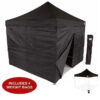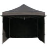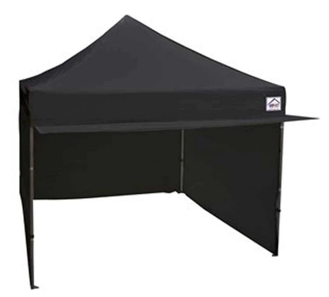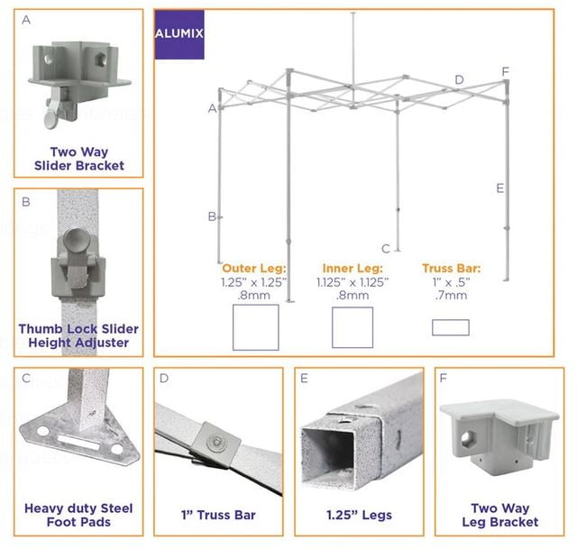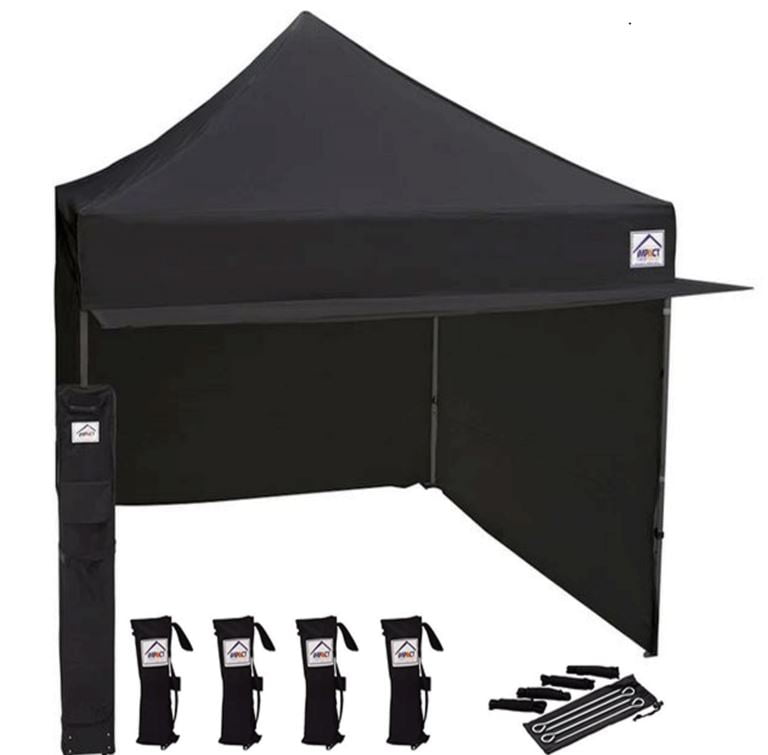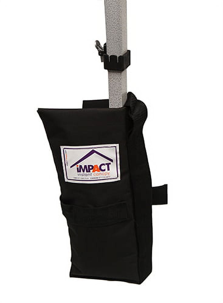 Impact Canopy Alumix 10×10 Canopy with Sidewalls and Weight BagsThe Impact ?Alumix? Canopy combines the strength and durability of aluminum and steel to produce a perfect combination for business and recreational uses with the added shade and rain protection. Perfect for craft shows, event booths, tailgating, wedding, parties, beach outings etc., Features: Frame with steel trusses and aluminum legs Full truss design 120?x27? awning 500 Denier polyester fire-retardant canopy top fabric meets ULCS 109, CPAI 84 & NFPA 701 fire codes (4) 190 denier matching zippered walls Canopy weight bags can be filled with dirt, sand, rocks, etc., and include a pocket capable of fitting a 1-liter bottle and attach to any canopy leg with Velcro straps Included canopy accessories canopy frame, roller bag, awning, 4 weight bags, and a universal spike and rope kit Weighs 69 lbs Please Note: This canopy is NOT to be left unattended as it is considered a temporary shelter! If there is inclement weather, you should take your canopy down immediately. Any rain and winds over 10-15 MPH will damage your canopy. Water that collects on the canopy top will also destroy the structure of your canopy. We advise you to never leave your canopy up overnight and unattended under inclement weather conditions. We will not be held responsible for ANY weather damages. It is to the customer?s best judgment in determining the best weather conditions for your canopy.