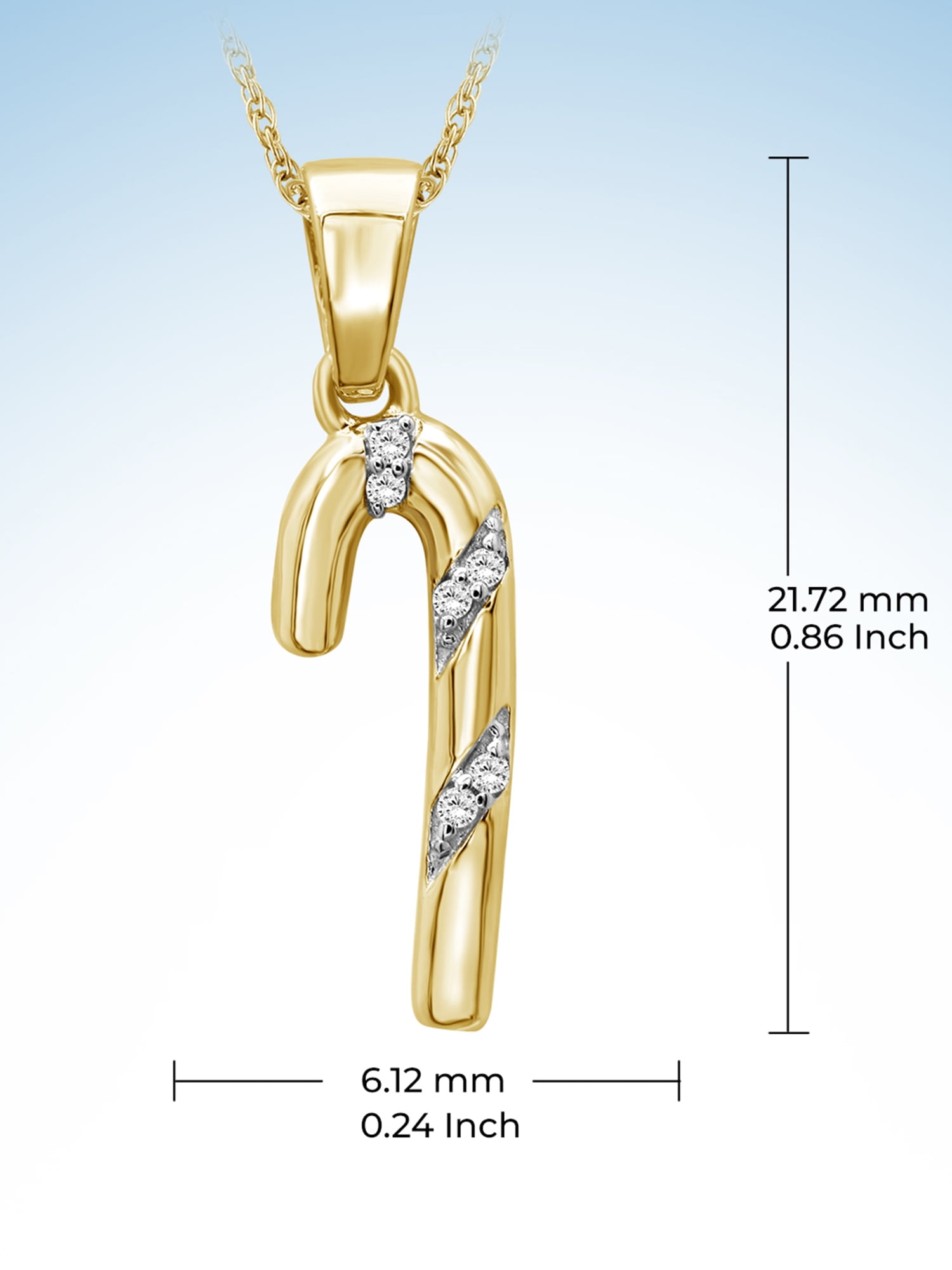 Crafted out of lustrous, highly durable 14k Gold over Silver, the JewelersClub Candy Cane Pendant features genuine .02 CTW White Diamonds set in a glimmering pattern. Supported by a strong 18-inch rope chain with a spring ring clasp, our Candy Cane-inspired necklace is made to remain securely in place throughout all your winter festivities.