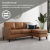 This sectional sofa is designed to accommodate both families and pets, offering a sturdy and stylish seating solution for daily use. The faux leather upholstery is both durable and easy to maintain, ensuring that it remains clean and comfortable for years to come. The sectional features warm tapered wood legs and an underframe that adds to its mid-century modern-meets-farmhouse aesthetic. The adaptable design makes it suitable for various living spaces, and the ultra-modern construction ensures that it will last for years. Additionally, the sofa is easy to assemble and disassemble, allowing for simple movement from room to room or house to house. Overall, this sectional sofa is a practical and stylish choice for families and pet owners who want a comfortable and long-lasting seating solution.