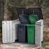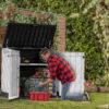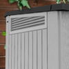 The Keter best-selling Store-It-Out MIDI provides well-ventilated storage for up to 845 L/30 cu. ft. of items. Ideal for interior and outdoor spaces. Easy to take home and easy to position, it blends in with your home and is a breeze to assemble. Floor panel, top and front opening, and durable, weather-resistant construction comes as standard. Product Dimensions: Height: 28in Length: 52in Width: 45in. / 4.3′ x 2.3′ x 3.7′ . The Midi shed has a strong storage capacity of 30 cubic feet.