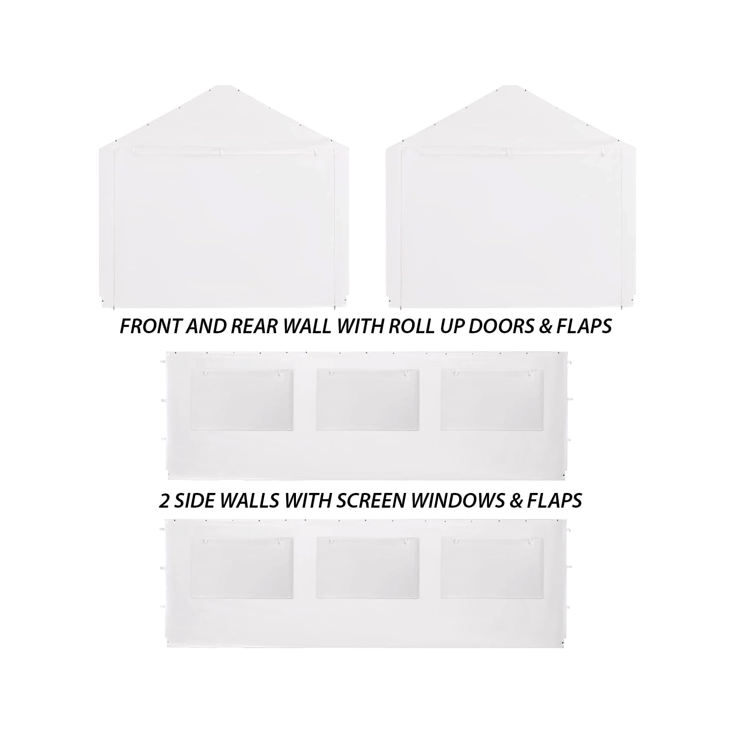 King Canopy side wall kits are the perfect accessory for any canopy. They are great for privacy, storage, or simply just for wind / shade protection. Fits the 12 ft. x 20 ft. Canopy. Canopy Frame and Cover not included. Sidewall Kit accessory only. Includes (2) 20 ft. long sidewalls with Bug Screen Windows (6) total and (2) 12 ft. Wide Zippered End walls with Roll Up Doors.