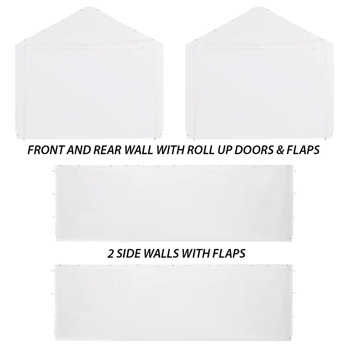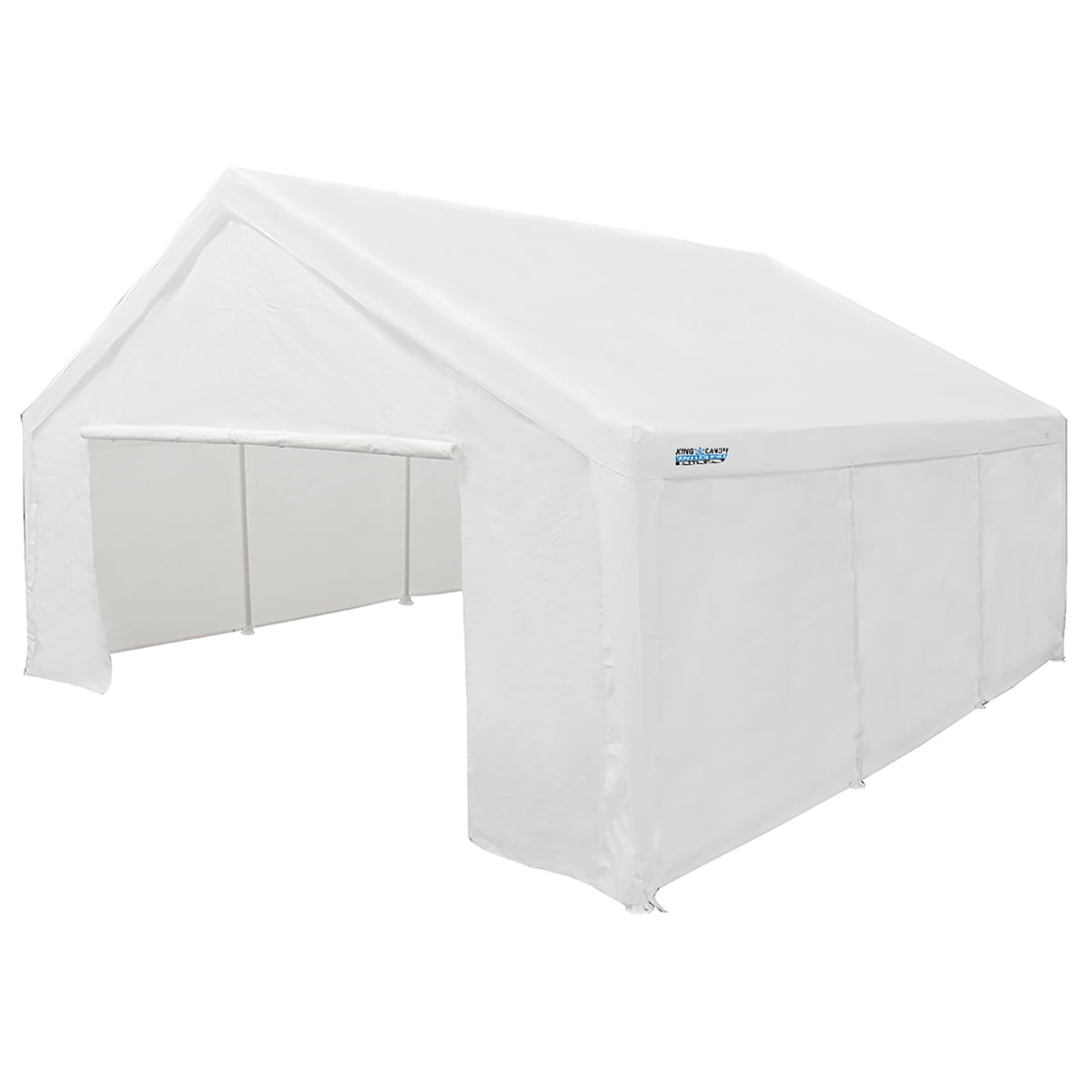 King Canopy side wall kits are the perfect accessory for any 17-feet 9-inch by 27-feet canopy. They are used for privacy, storage, or simply just for wind & shade protection. Sidewall Kit accessory only, Canopy Frame and Cover not included. Includes (2) 27-feet long solid sidewalls, (2) 17-feet 9-inch-Wide Zippered End walls with Roll Up Doors and 50 Ball Bungees.