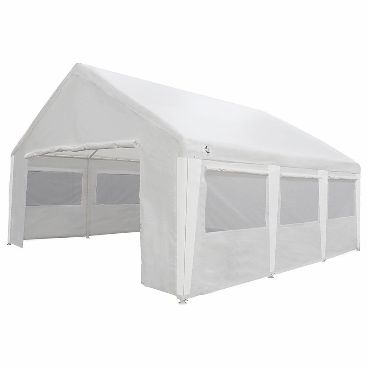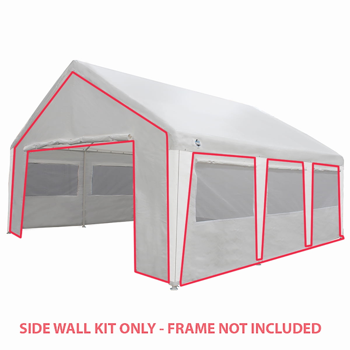 King Canopy side wall kits are the perfect accessory for King Canopy’s Event Tent ET2020G or ET2020W that measures 20-ft by 20-ft canopy. They are used for privacy, storage, or simply just for wind & shade protection. Sidewall Kit accessory only, Canopy Frame and Cover not included. Includes (2) 20-ft Long Sidewalls with three screen windows, (2) 20-ft Wide Zippered End walls with Roll Up Doors and 50 Ball Bungees.