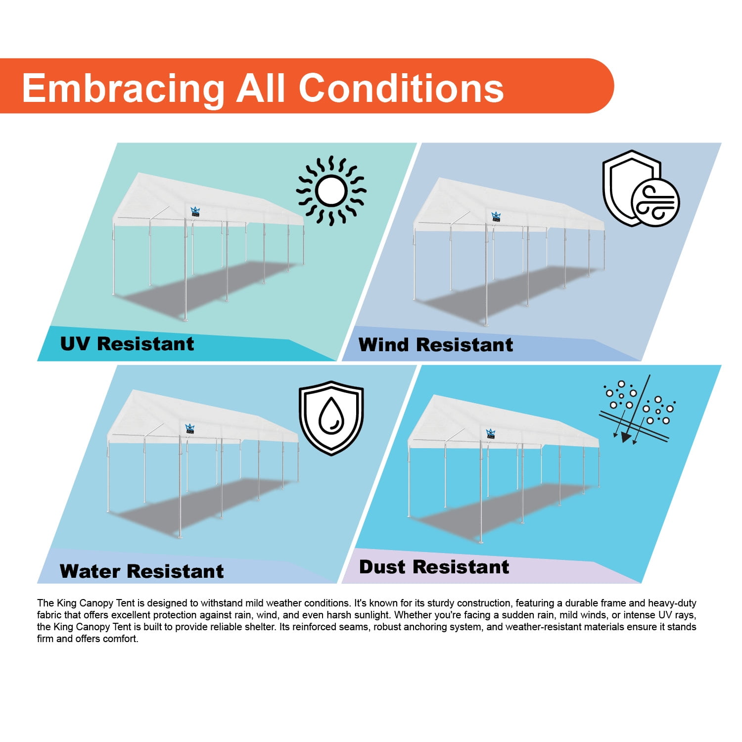 King Canopy Universal 10ft x 27ft, 1 3/8-inch Powder Coated Steel Frame, 10 Leg, 180gsm Polyethylene White Cover
