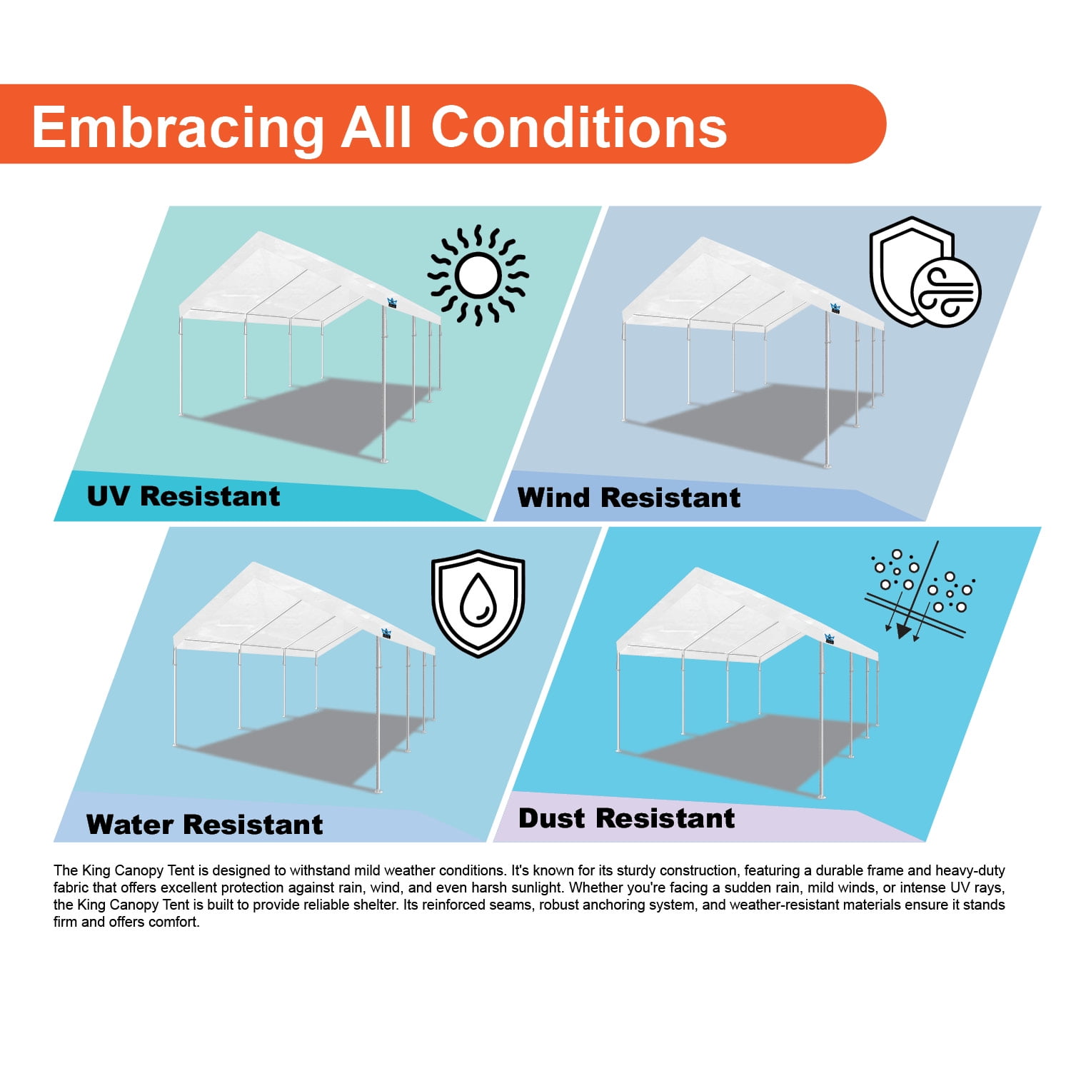 King Canopy Universal Canopy 12′ x 20′ , 1 3/8-Inch Powder Coated Steel Frame, 8 Leg, White
