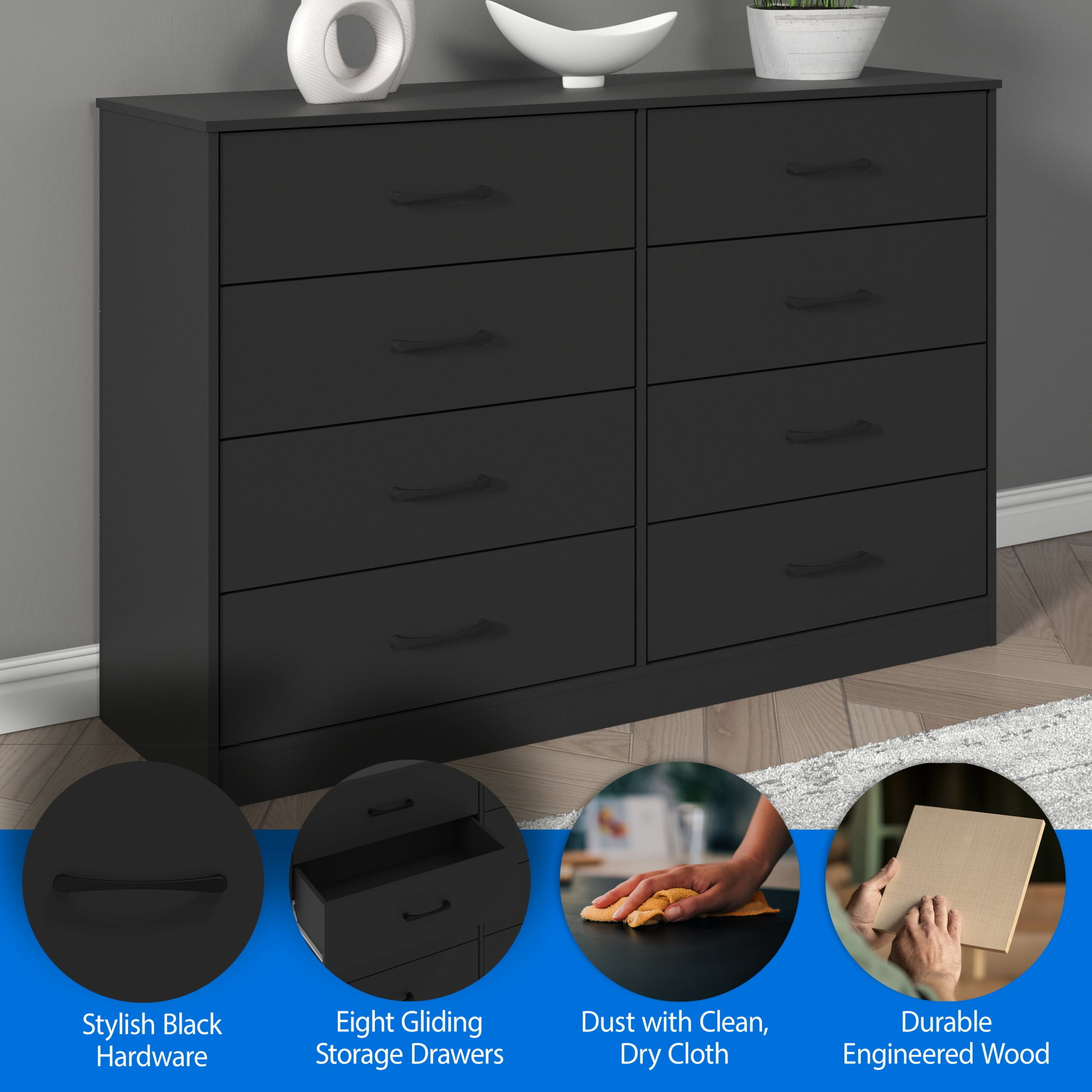 This 8-drawer dresser is as simple to put together as it is sleek. Featuring a design that allows for quick and easy assembly by anyone, this piece gives you an elevated look without the hard work. Grooved Wood Compositeen panels are designed to stay in place so you can effortlessly snap them together and then move on with your day. With clean lines and a timeless silhouette, this adult dresser boasts generously sized drawer pulls, and a lamination process ensures a neutral white finish throughout. Tall and lean, this dresser features eight spacious drawers that slide smoothly on a metal glide system. Add understated elegance to your bedroom with this casual transitional piece. Assembly required.