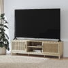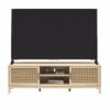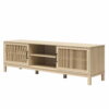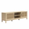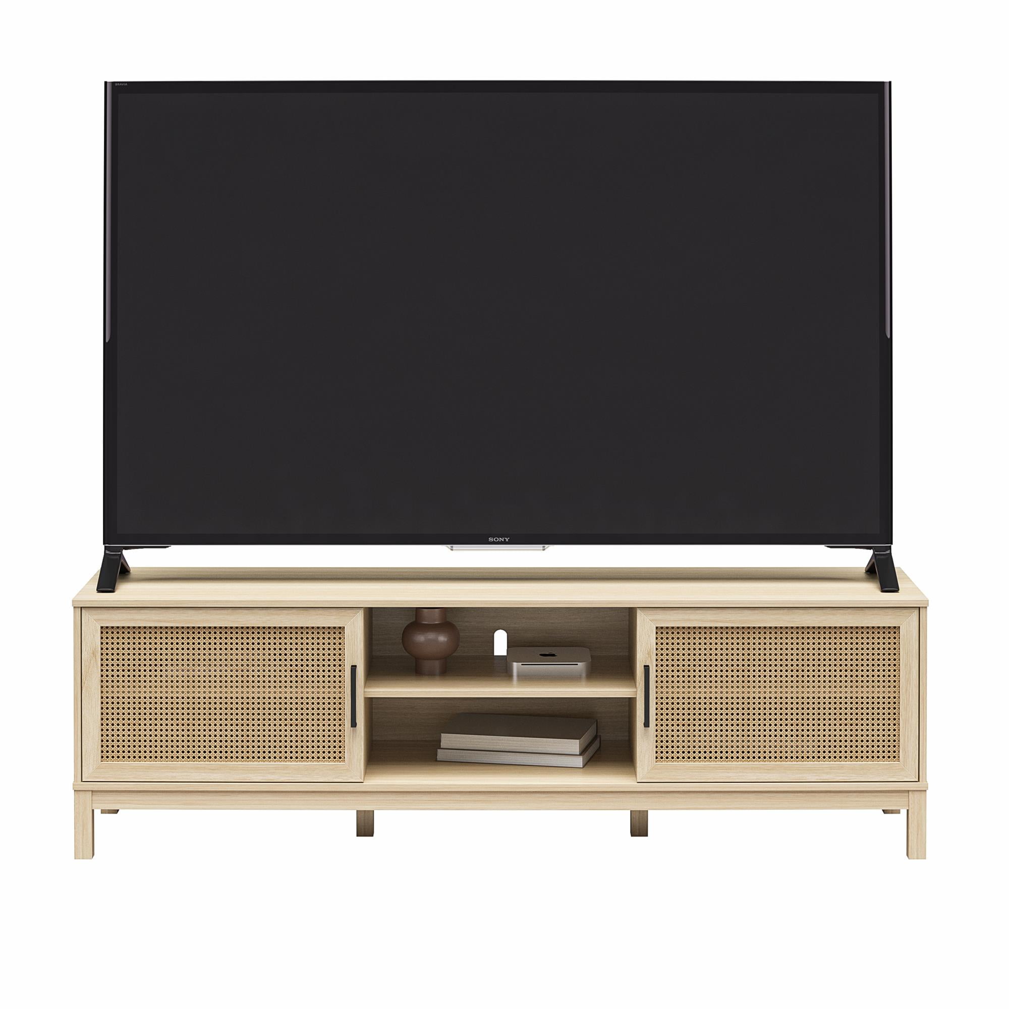 Transform your living space effortlessly with the boho chic Mainstays Cane TV Stand, tailor-made for TVs up to 85″. Embrace the essence of bohemian style as this stunning piece features two beautiful cane doors, infusing an artisanal touch into your home decor. Meticulously crafted with careful attention to detail, the stand offers not only ample storage with two open shelves for media devices and accessories but also four concealed shelves behind the doors for books and trinkets. Its spacious shelves and concealed compartments ensure both versatility and functionality, while the natural textures and earthy tones create a warm and inviting atmosphere, becoming the undeniable focal point of your living room, bedroom, or home theater. Whether it’s enjoying your favorite TV show or hosting a movie night, this low-profile TV stand is your perfect companion, designed with sturdy MDF and natural cane inserts on the door fronts for lasting durability and style. Elevate your entertainment experience with the Mainstays Cane TV Stand and indulge in both beauty and functionality seamlessly integrated into your home decor. This TV Stand requires assembly upon delivery. Two adults are recommended for proper assembly. Once assembled it measures to be: 23″H x 76″W x 18″D.