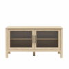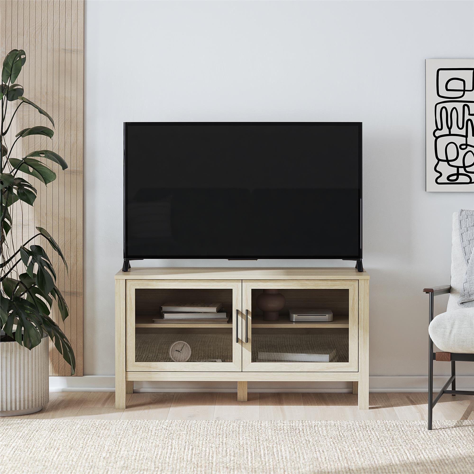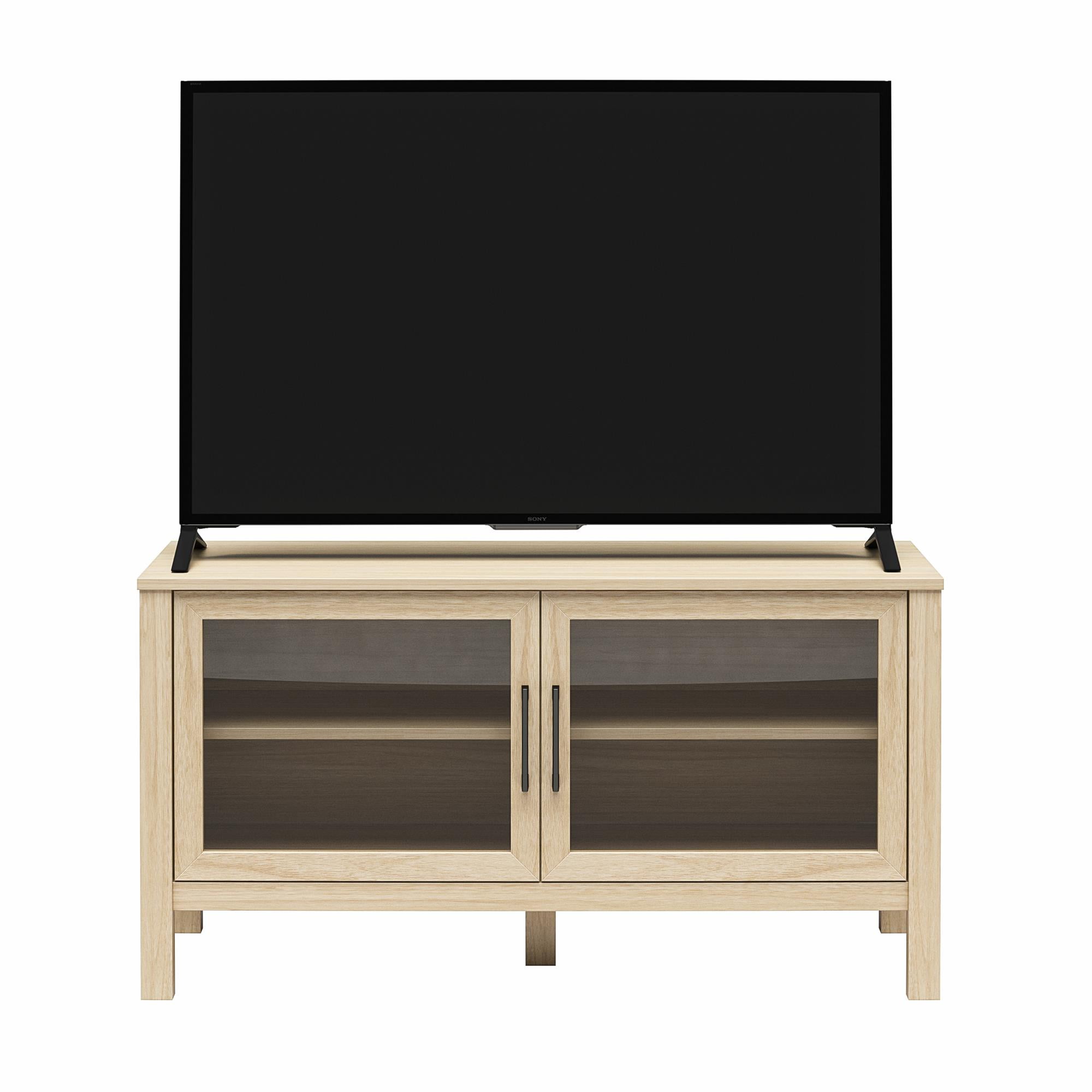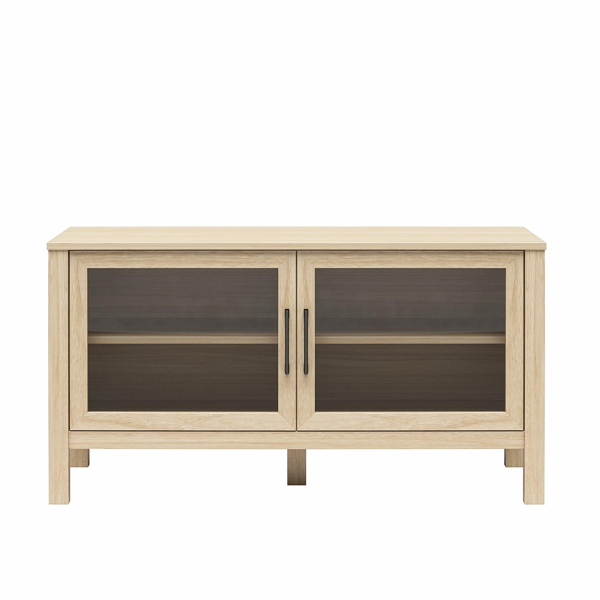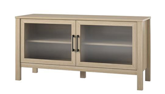 Introducing the Mainstays Glass Door TV Stand – where simplicity meets modern elegance. Designed to accommodate TVs up to 55″, this sleek stand effortlessly elevates your entertainment space. With its minimalist aesthetic and clean lines, it seamlessly blends into any contemporary décor. The standout feature of this TV stand lies in its glass door cabinets, offering a stylish showcase for your media essentials while keeping them dust-free. Equipped with four shelves, two of which are adjustable, you have the flexibility to customize the space to suit your personal preferences. Constructed from laminated engineered wood and MDF, this TV stand offers the assurance of a stable surface for your television, providing peace of mind. Whether it’s displaying your media devices, storing DVDs, or showcasing décor accents, this TV stand provides both style and functionality in one chic package. Upgrade your living room with the Mainstays Glass Door TV Stand and redefine your entertainment experience with sophistication and simplicity. The Glass Door TV Stand requires assembly upon delivery. Once assembled it measures to be: 23″H x 47.5″W x 15.7″D.