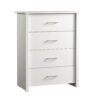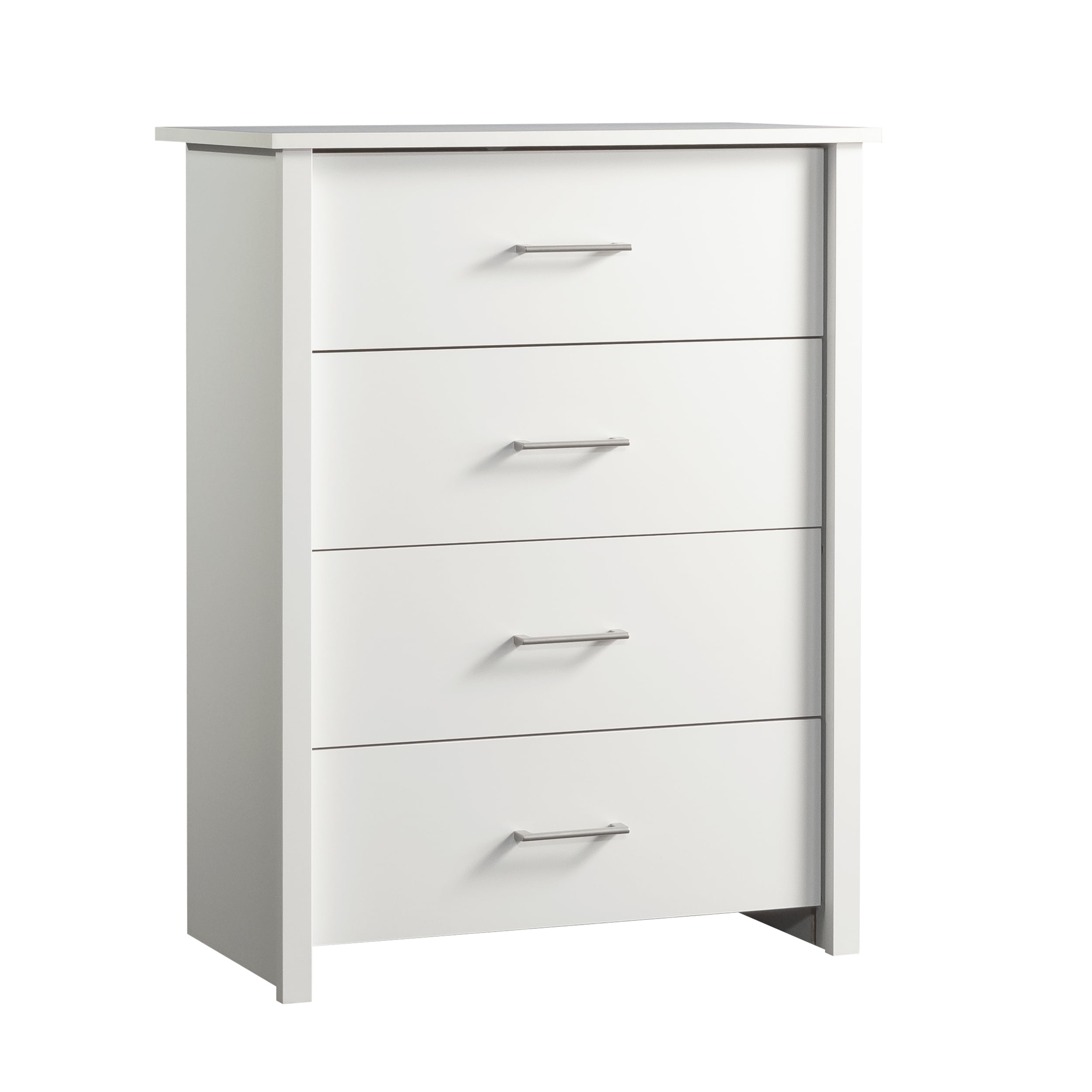 Keep clothes neat and organized in a large-drawer dresser like the Mainstays™ Hillside collection 4-drawer bedroom chest. With four drawers that are constructed with metal runners and safety stops, there is space for all your folded items in this bedroom furniture. Bulky items like sweaters, jeans and sweatshirts store effortlessly with the spacious drawer storage in this bedroom chest of drawers. Its spacious design allows for neat and easy storage of items like blouses, pajamas, and linens. Wherever you need more clothes storage, this white chest of drawers has your back—whether it is the guest room, master suite, or children’s bedroom. With a versatile white finish, this 4-drawer dresser fits any bedroom design. The Mainstays™ Hillside collection offers you sleek, functional, and stylish storage and organizing solutions and this 4-drawer chest is one example of the many excellent options.