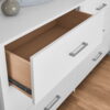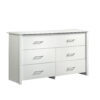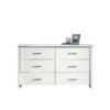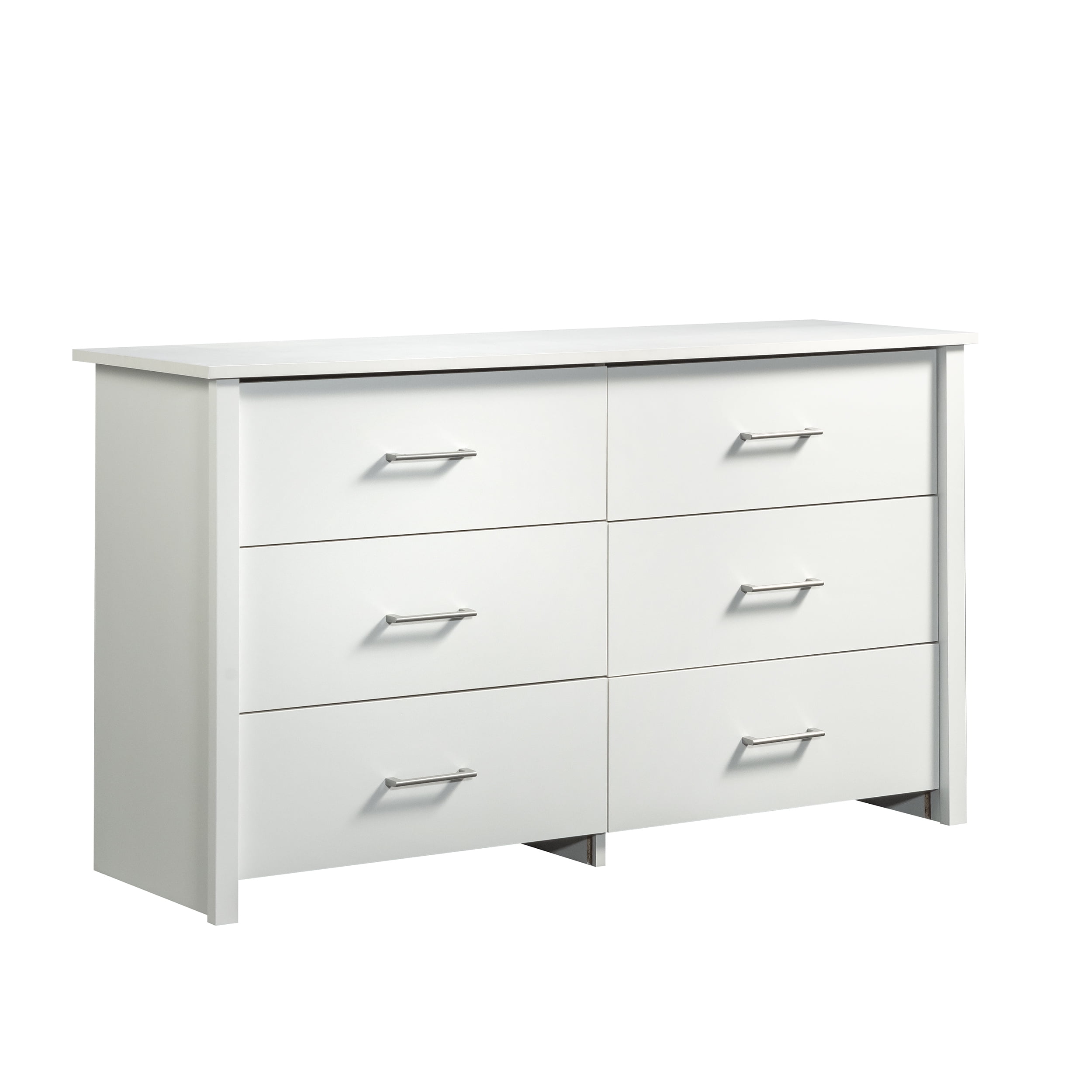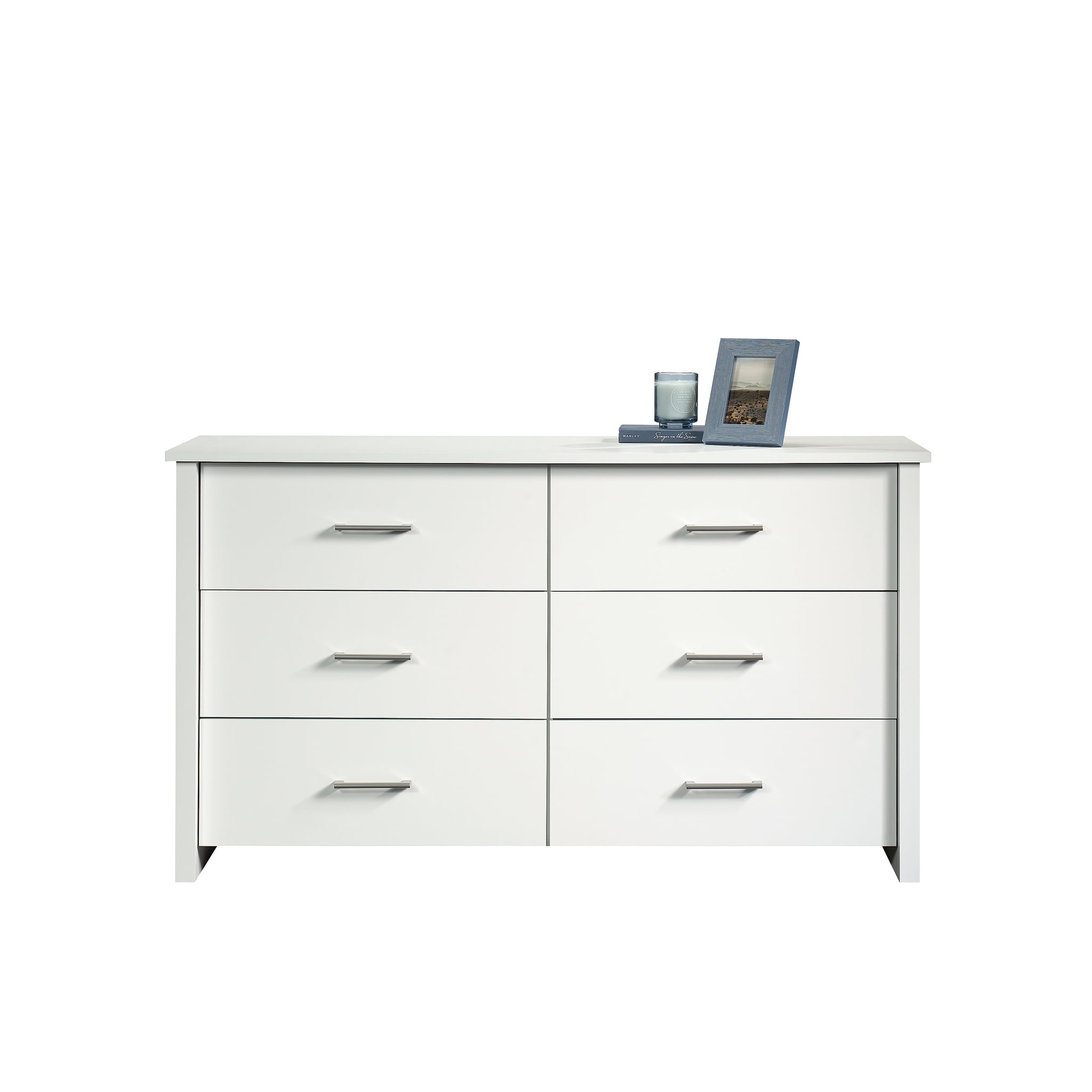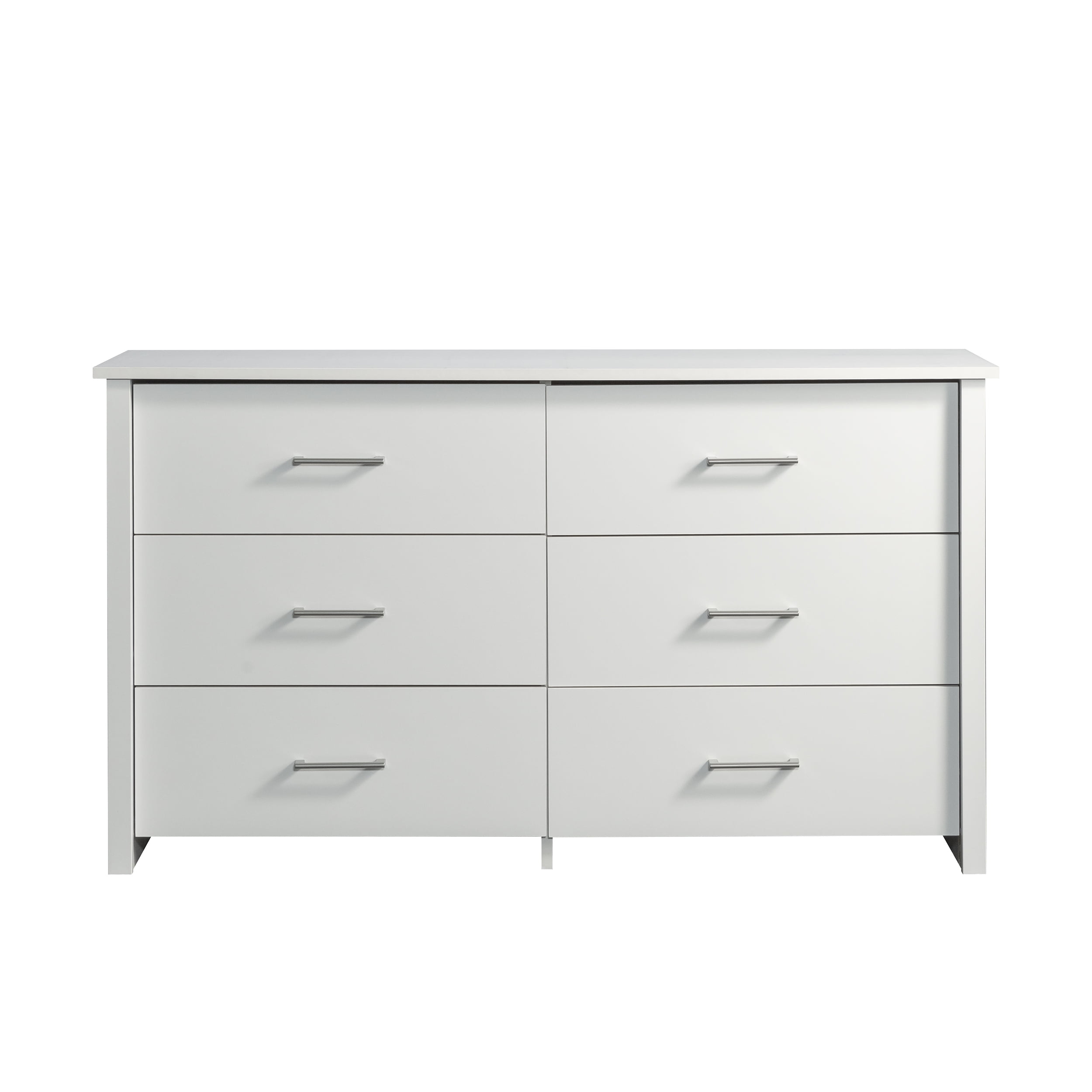 Give your clothes the spacious and stylish home they deserve with this 6 drawer dresser from the Mainstays Hillside collection. This double dresser features six large drawers that open and close on smooth metal runners for easy access to what makes you happy: big sweatshirts, your favorite pair of lived in jeans or the coziest blanket you own. With a spacious top surface, this bedroom dresser provides you with additional space to keep your bedroom essentials as well as home décor. Keep your perfume, wrist watch, or favorite candle in an easy to reach spot on top of this dresser with storage. Simplicity and timeless design make this chest of drawers a perfect addition to any bedroom furniture set in your home. Finished in Soft White, let the Mainstays Hillside 6 drawer chest offer you style and function in one timeless item.