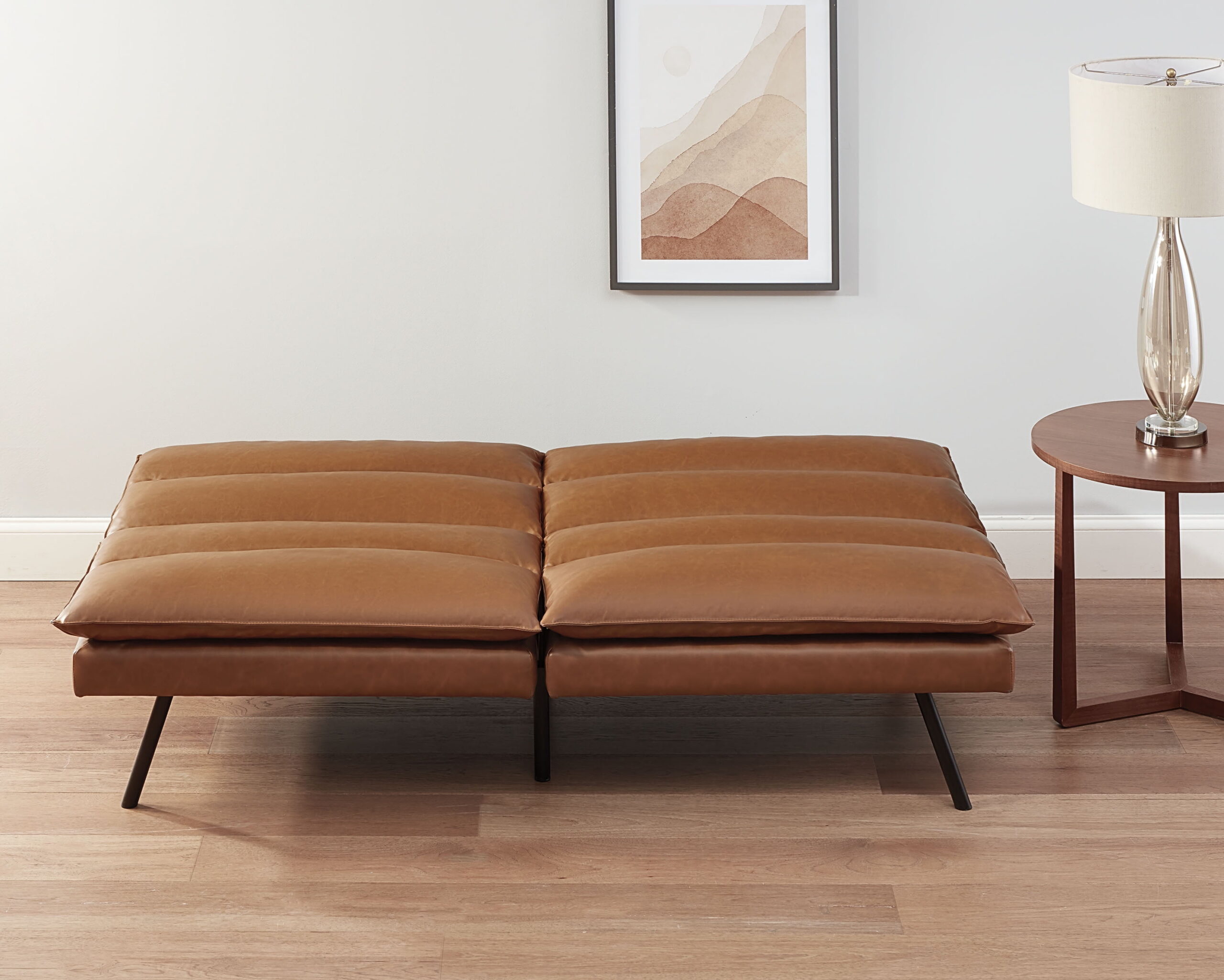 The Mainstays Memory Foam Pillow Top Futon comfortably pulls double duty to save you space and money. Featuring a clean-lined wooden frame with durable metal legs, this impressive futon is extra seating and a foldable bed in one. Designed to take any living room from day-to-night, a split seat and back design quickly and easily convert the futon from a sofa to lying flat in a flash for adult. The pillow top cushioning is constructed from extra-supportive memory foam to deliver plenty of lounge and snooze-worthy comfort. Whether you?re looking for furniture for your dorm or in need of a small-space solution for your apartment, the Mainstays Pillow Top Futon is a stylish and practical convertible sofa that works for your comfort, 24 hours a day.