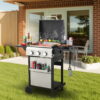 Miniyam 3-Burner Multi-function Propane Gas BBQ Grill with Side Burner for Outdoor Cooking, 37230BTU Output, Stainless Steel