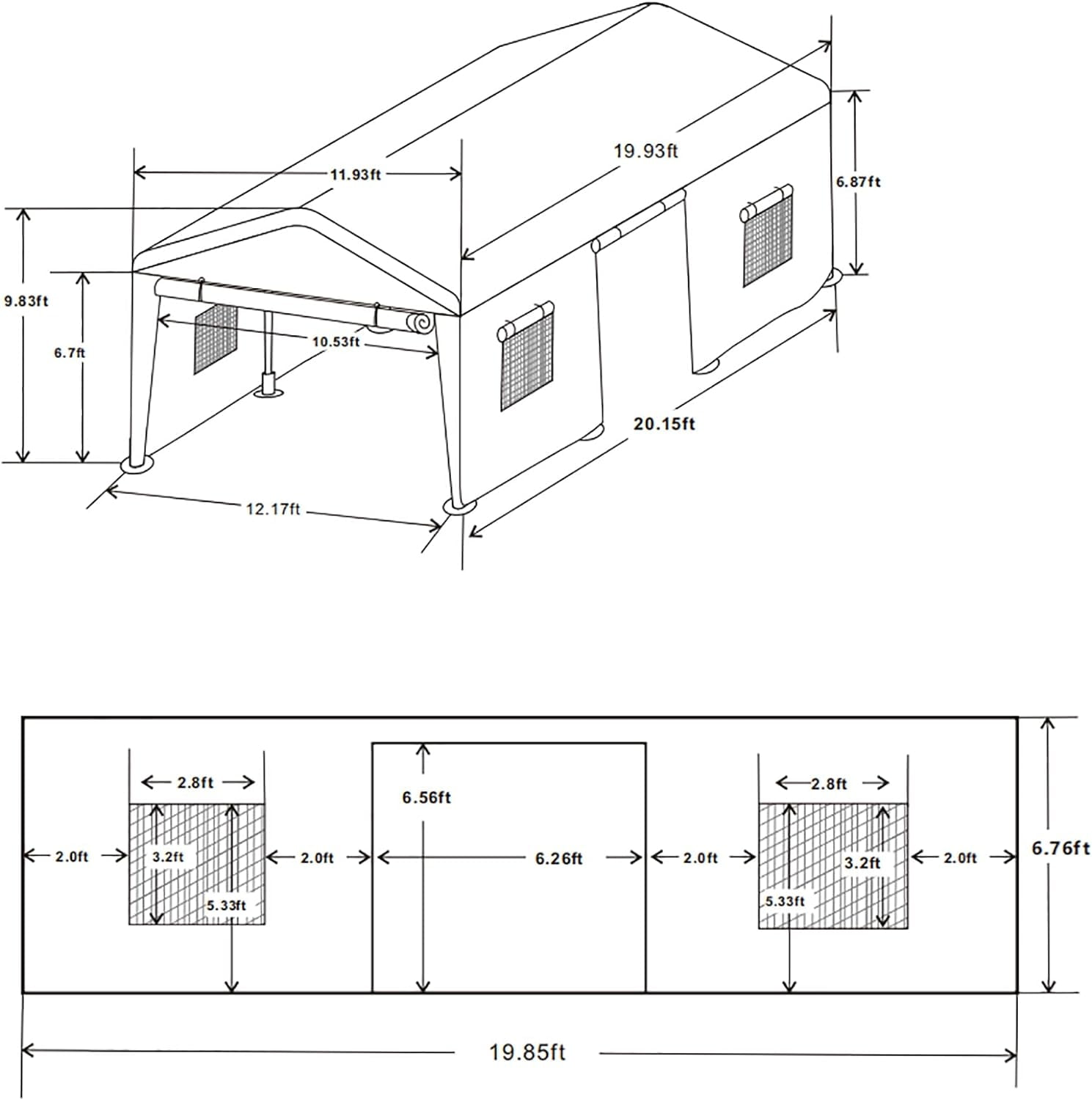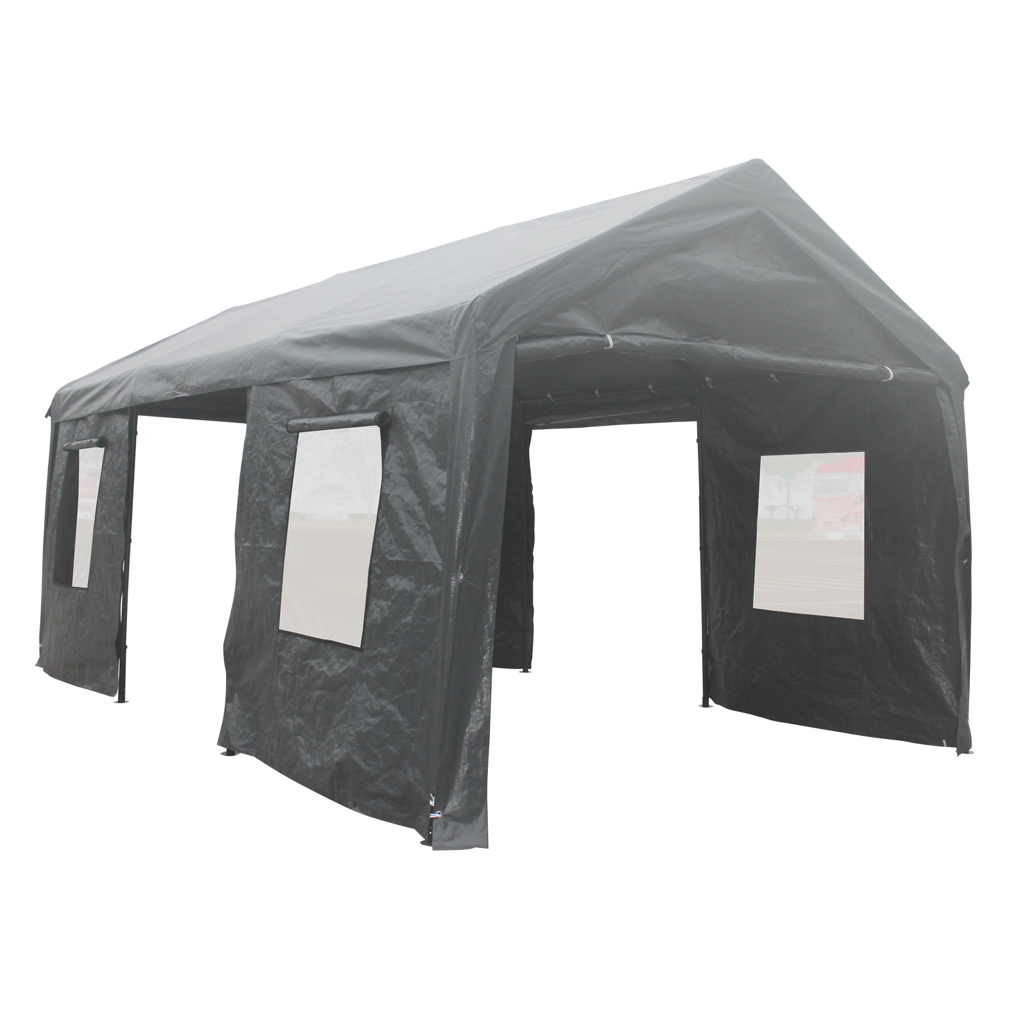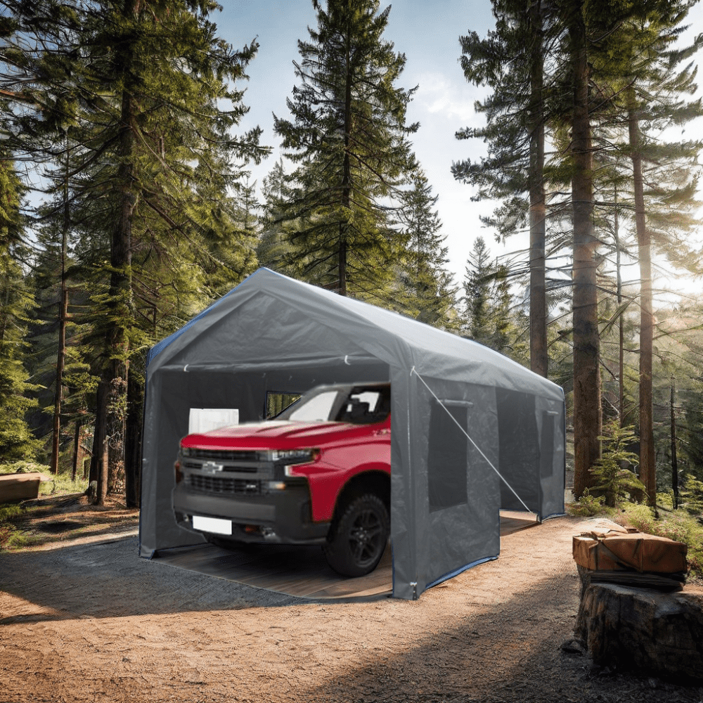 Experience ultimate versatility and protection with our Larger Carport. Its spacious 10’x20′ size accommodates vehicles, trucks, and boats, with removable sidewalls for customizable use. Enjoy superior ventilation with roll-up mesh windows while its heavy-duty steel construction and easy setup ensure durability and stability. Plus, the 180g waterproof canopy cover shields against all-season elements. Perfect for outdoor events and vehicle protection.