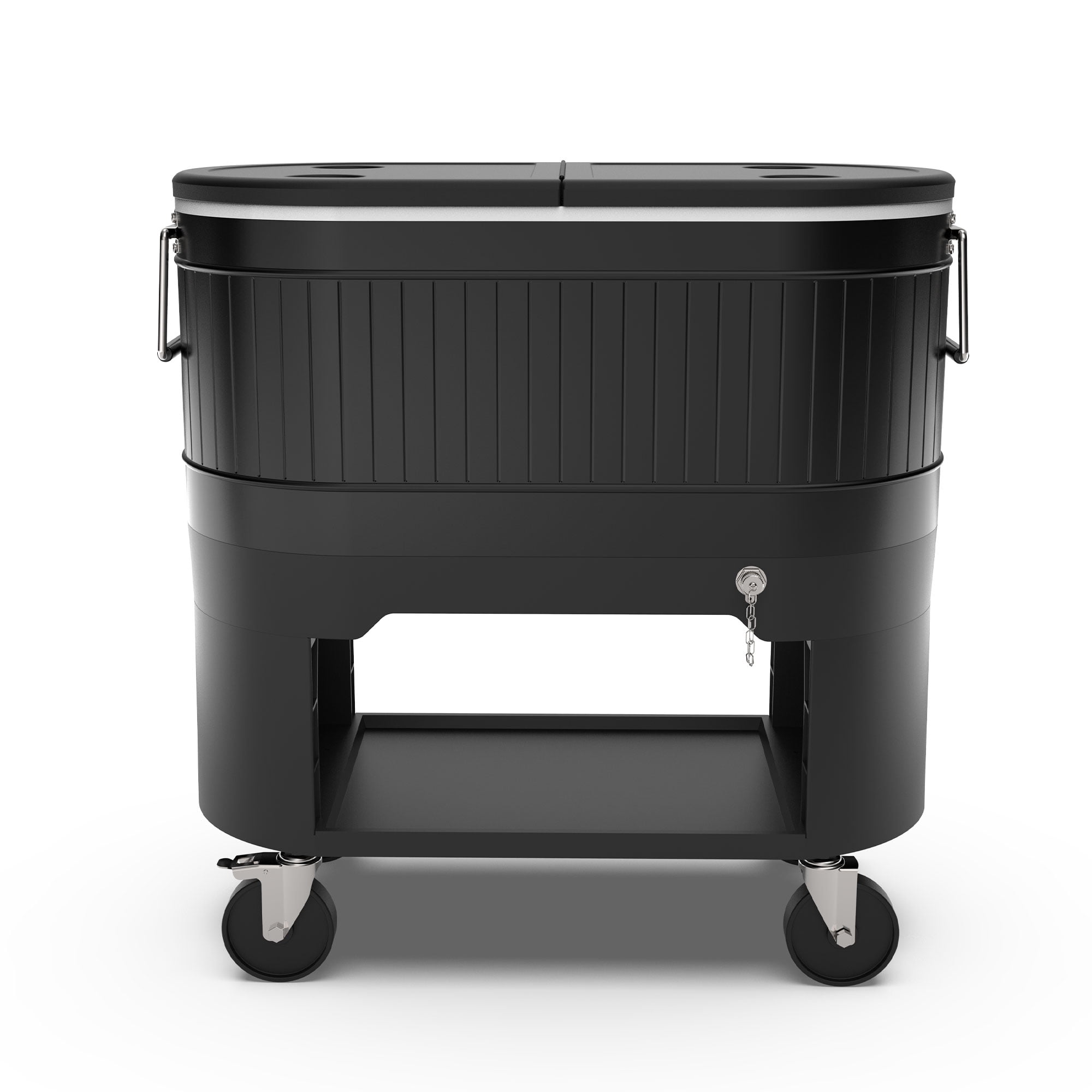 Gear up for your summer adventures with the Permasteel 120-QT Galvanized Steel Rolling Cooler! This rugged outdoor cooler boasts a spacious insulated basin for up to 120 quarts, perfect for a variety of refreshing beverages. The fully removable flip-top lid with recessed cup holders ensures easy access. Practical features include a built-in bottle opener, drain plug, large handles, and four rolling casters (two lockable) for smooth maneuverability. Stay cool and prepared with this durable, versatile cooler!